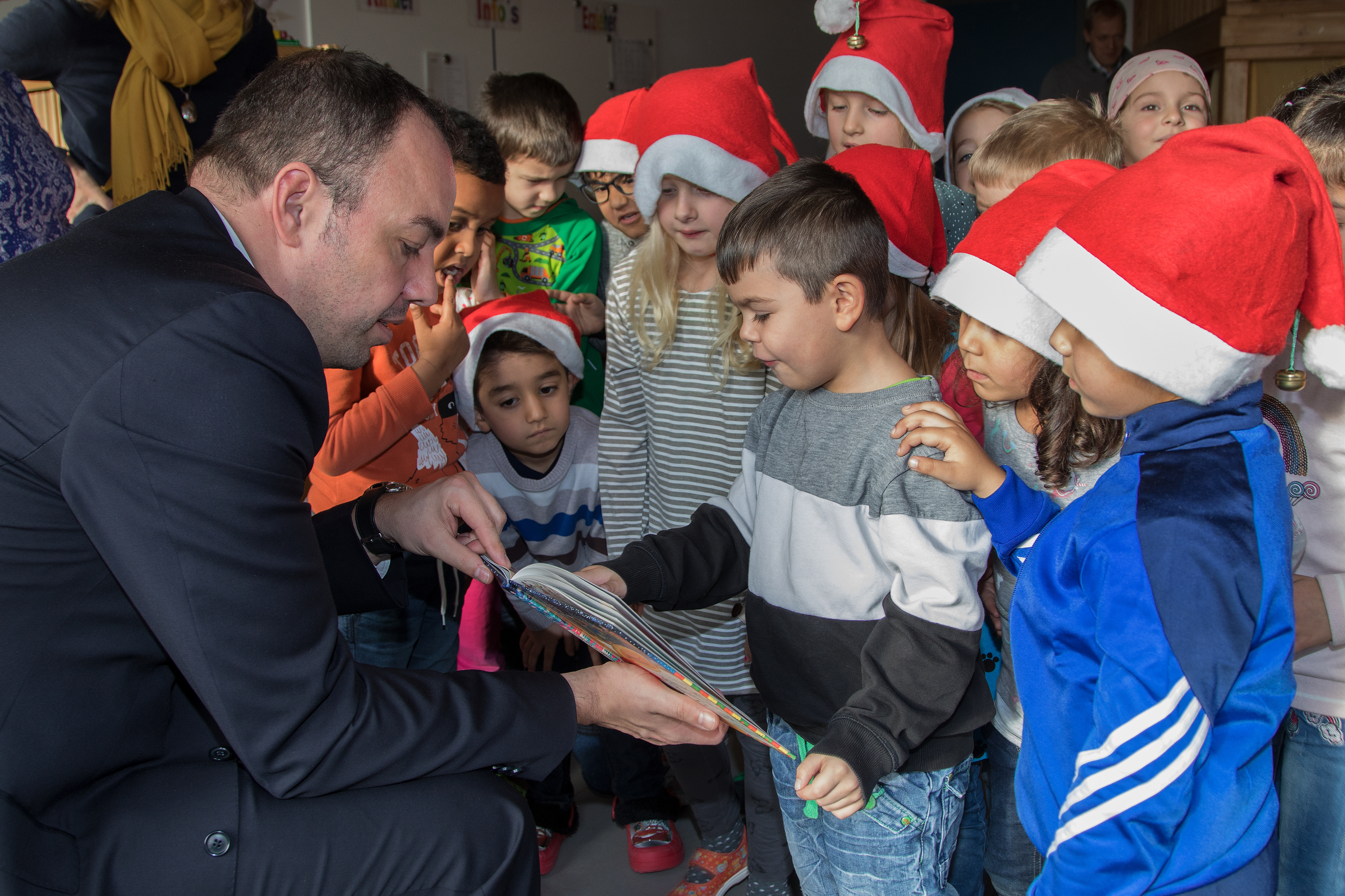 Oberbürgermeister Christian Geselle liest Kindern in der Kita Kirchditmold vor