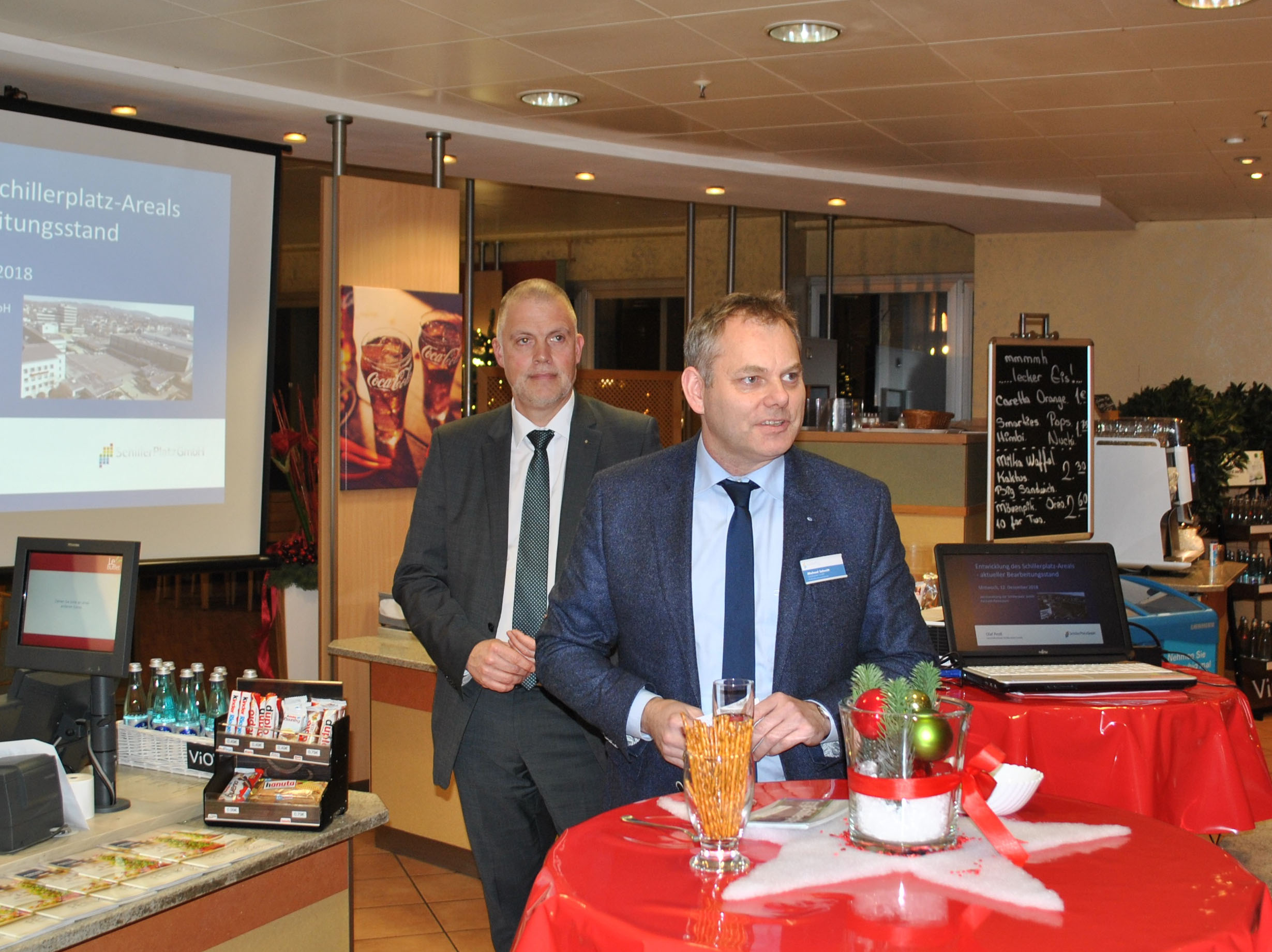 Der Geschäftsführer der Schillerplatz GmbH Olaf Pestl und der Aufsichtsratsvorsitzende Michael Schmitt (v.l.).