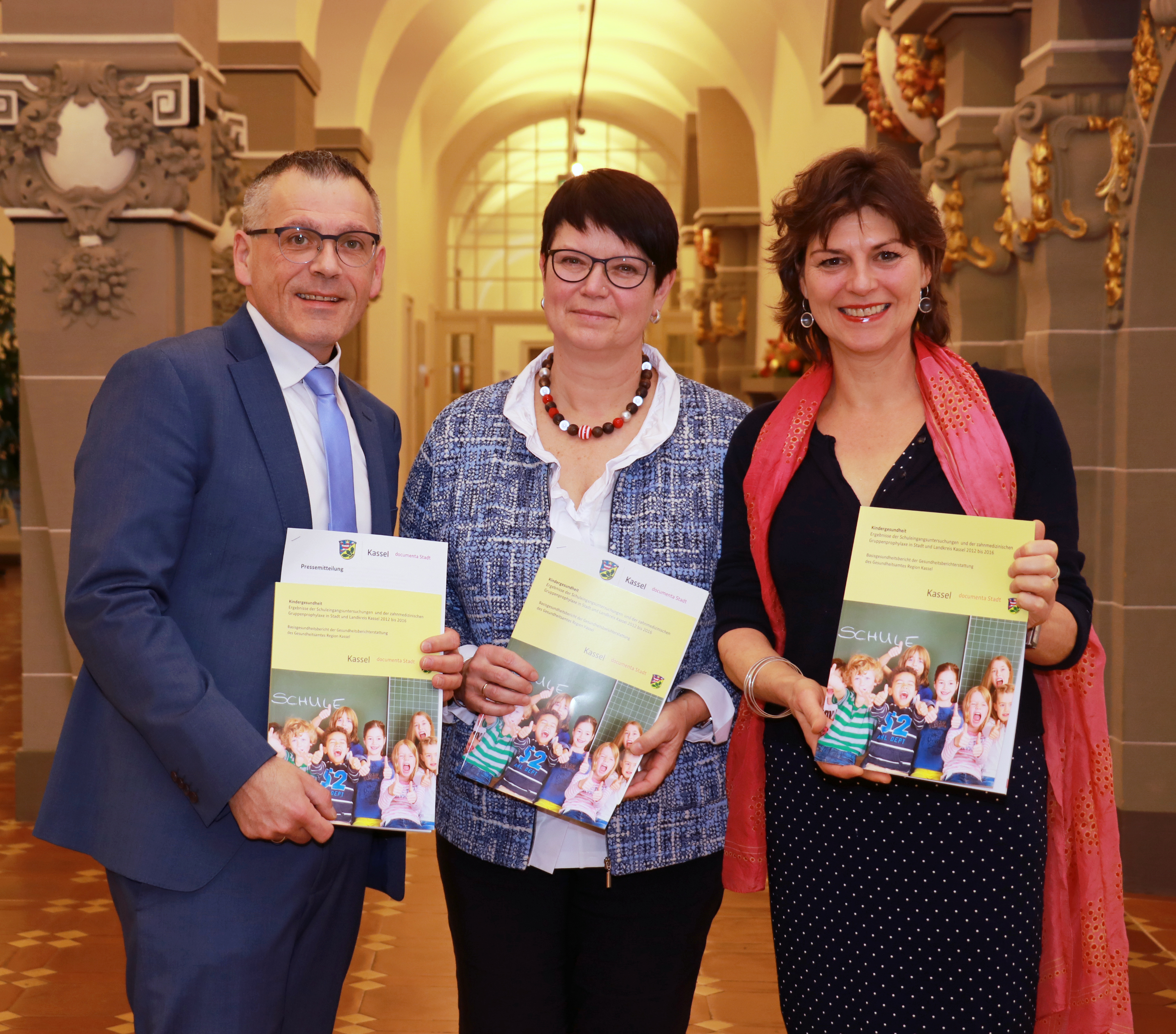 Andreas Siebert, Erster Kreisbeigeordneter, Regine Bresler, stellvertretende Leiterin Gesundheitsamt Region Kassel, sowie Stadträtin Anne Janz haben den Kindergesundheitsbericht vorgestellt.