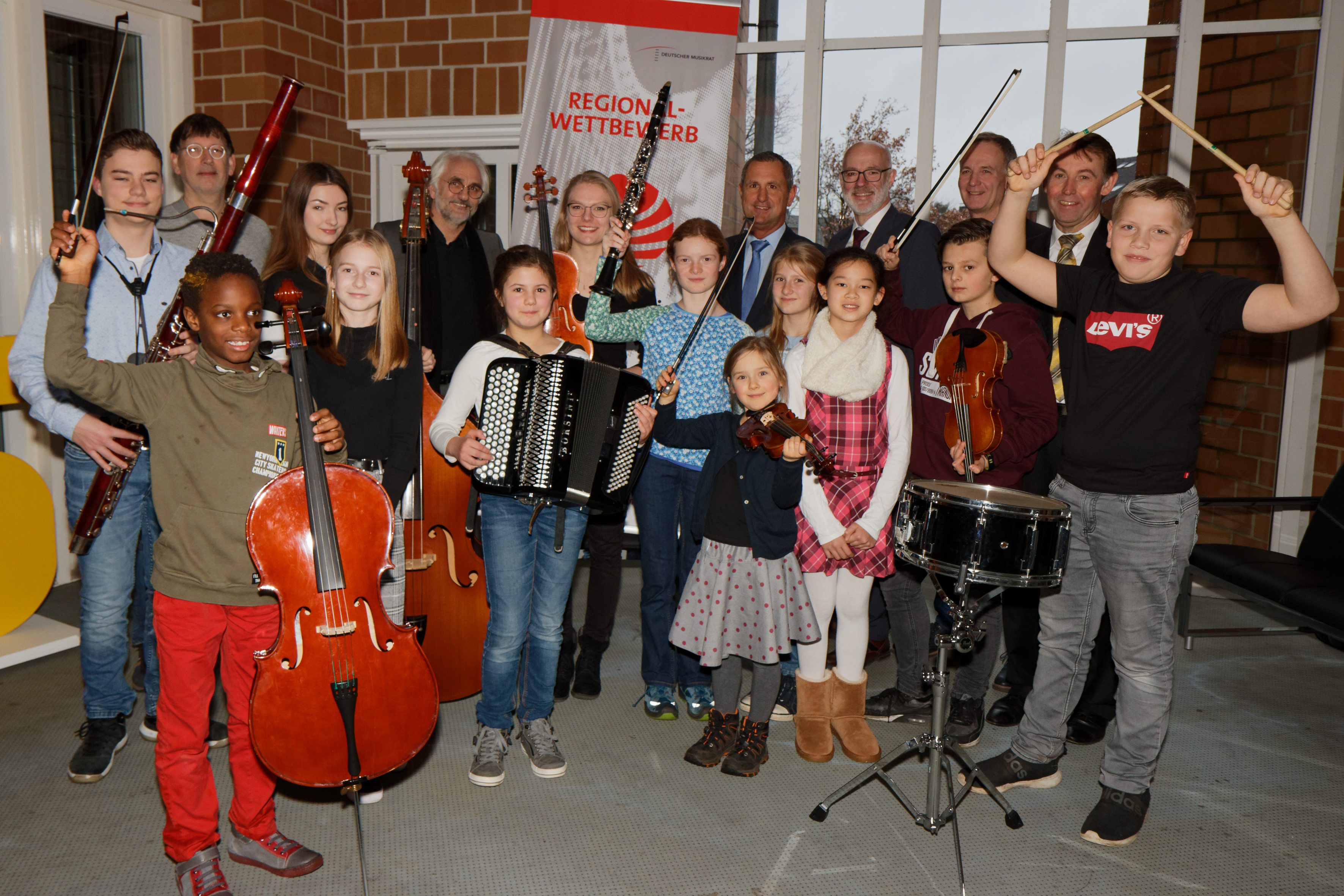 Die Schülerinnen und Schüler der Kreismusikschule Viersen und der Musikschule Mönchengladbach sind startklar für den Regionalwettbewerb. Alle Daumen drücken ihnen (hintere Reihe v.l.) Klavierbauer Heinz Kalscheuer, Christian Malescov (Leiter Musikschule Mönchengladbach), Harald Wiedera (Stadtsparkasse Mönchengladbach), Kreisdirektor Ingo Schabrich, Ralf Holtschneider (Leiter Kreismusikschule Viersen), Stefan Vander (Sparkasse Krefeld). Foto: Kreis Viersen / Abdruck honorarfrei