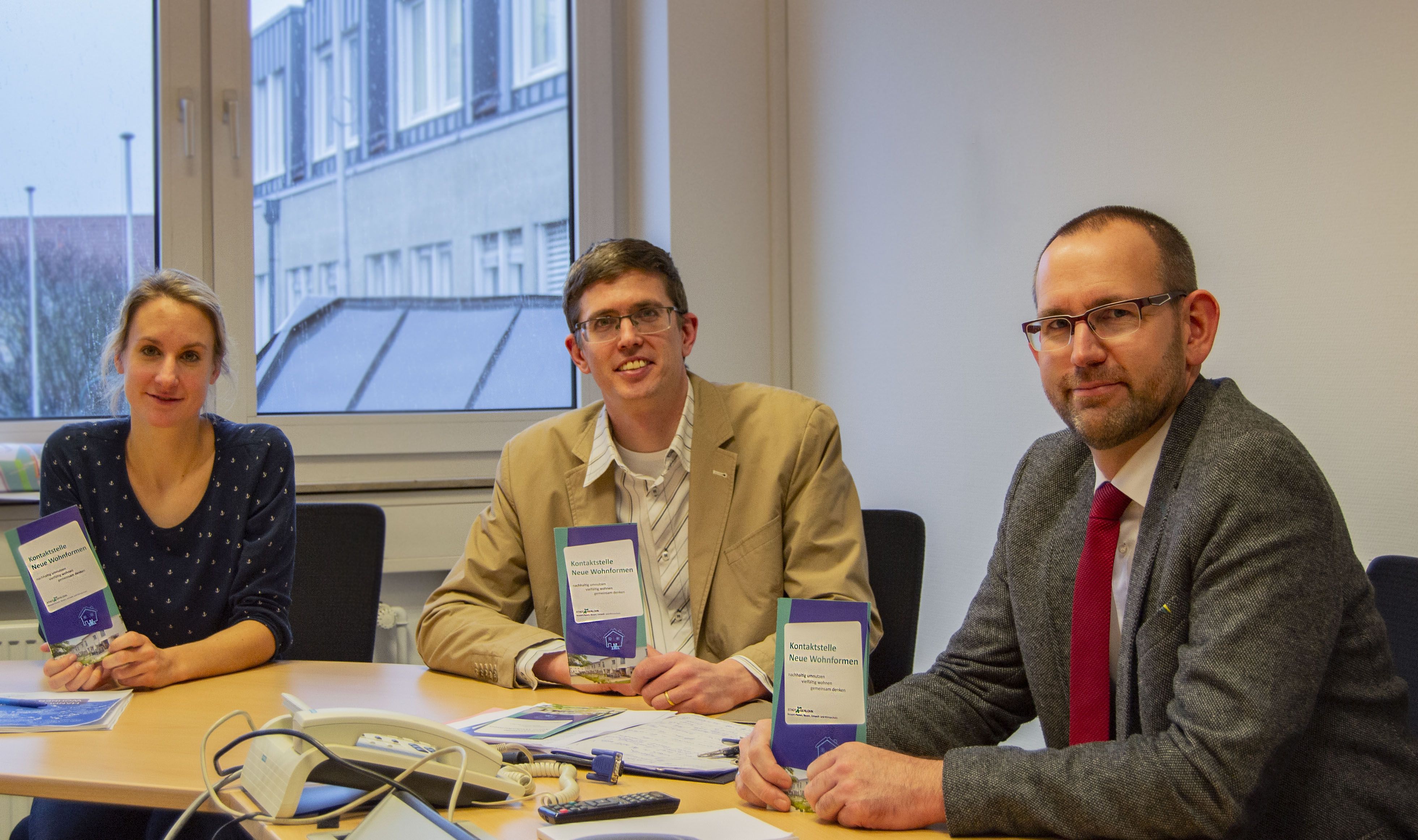 Stellten das neue Beratungs-und Vermittlungsangebot zum Thema „Neue Wohnformen“ im Rahmen eines Pressegespräches vor (v. li.): Ansprechpartnerin Britta Marscheider, Stefan Baumann, Leiter der Abteilung Stadtentwicklung und Grundstücke, und Stadtbaurat Thorsten Grote.