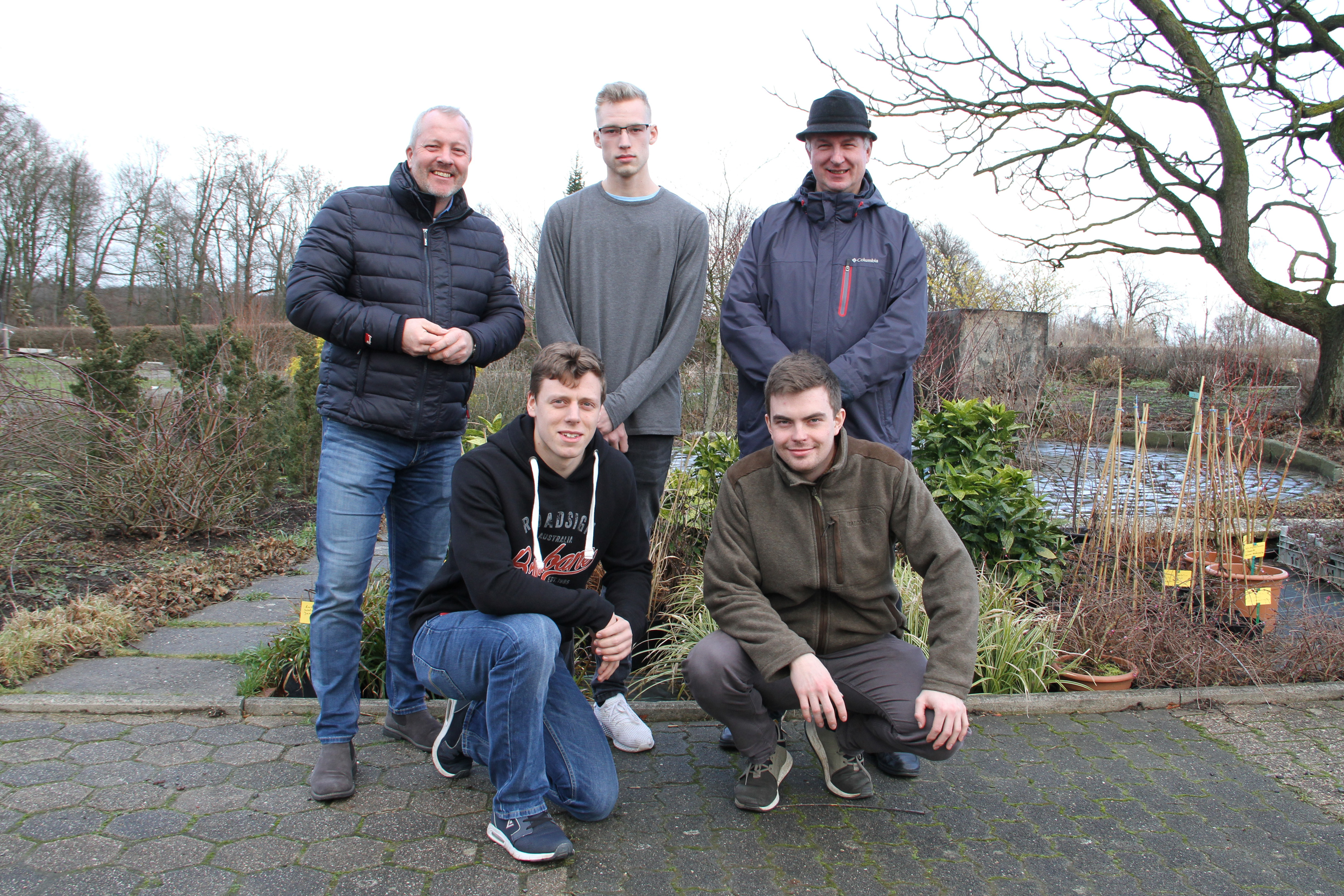 Sie freuen sich über die guten Prüfungsergebnisse: Fachdienstleiter Carsten Uhlenbrock (l.) und Ausbilder Martin Marks (r.) gemeinsam mit den Azubis Adrian Becker (v. l.), Björn Sinder (m.) und Jonas Blaschczok (v. r.).
