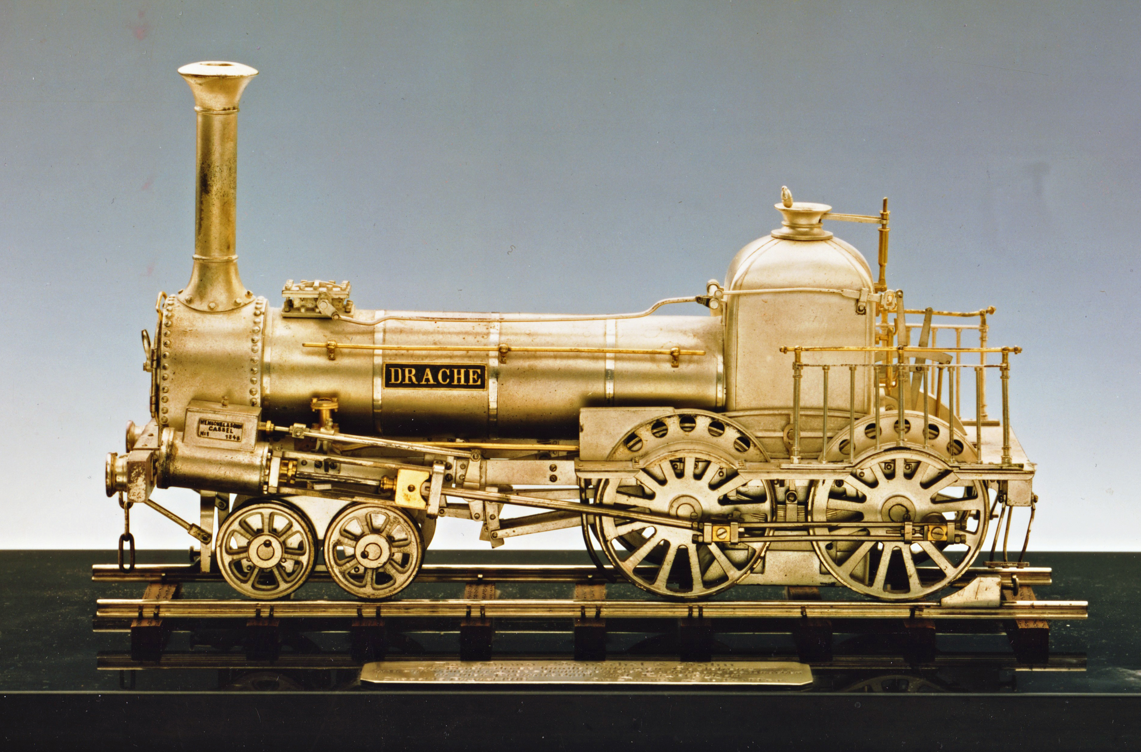 Ein Modell des „Drachen“, der ersten bei Henschel im Jahr 1848 gebauten Lokomotive.
