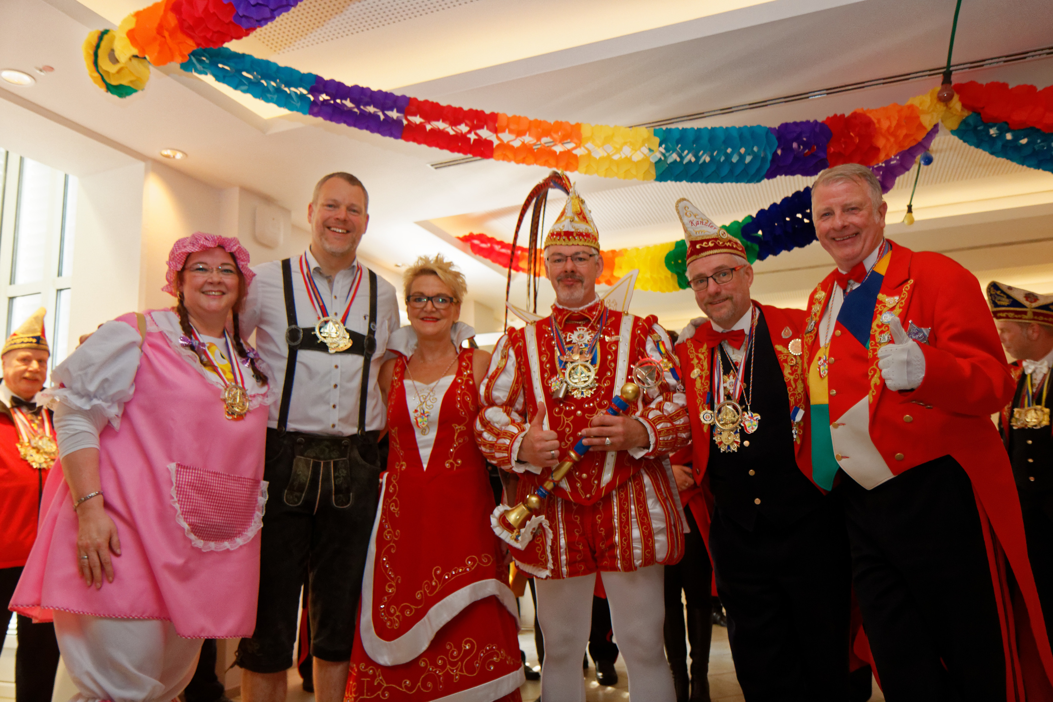 Pünktlich um 11.11 Uhr haben die Möhnen die Herrschaft an sich gerissen. Personalrätin Birgit Dürrmann (v.l.) und Landrat Dr. Andreas Coenen begrüßen die Viersener Tolitäten Prinz Thilo und Prinzessin Ute. Foto: Kreis Viersen / Abdruck honorarfrei