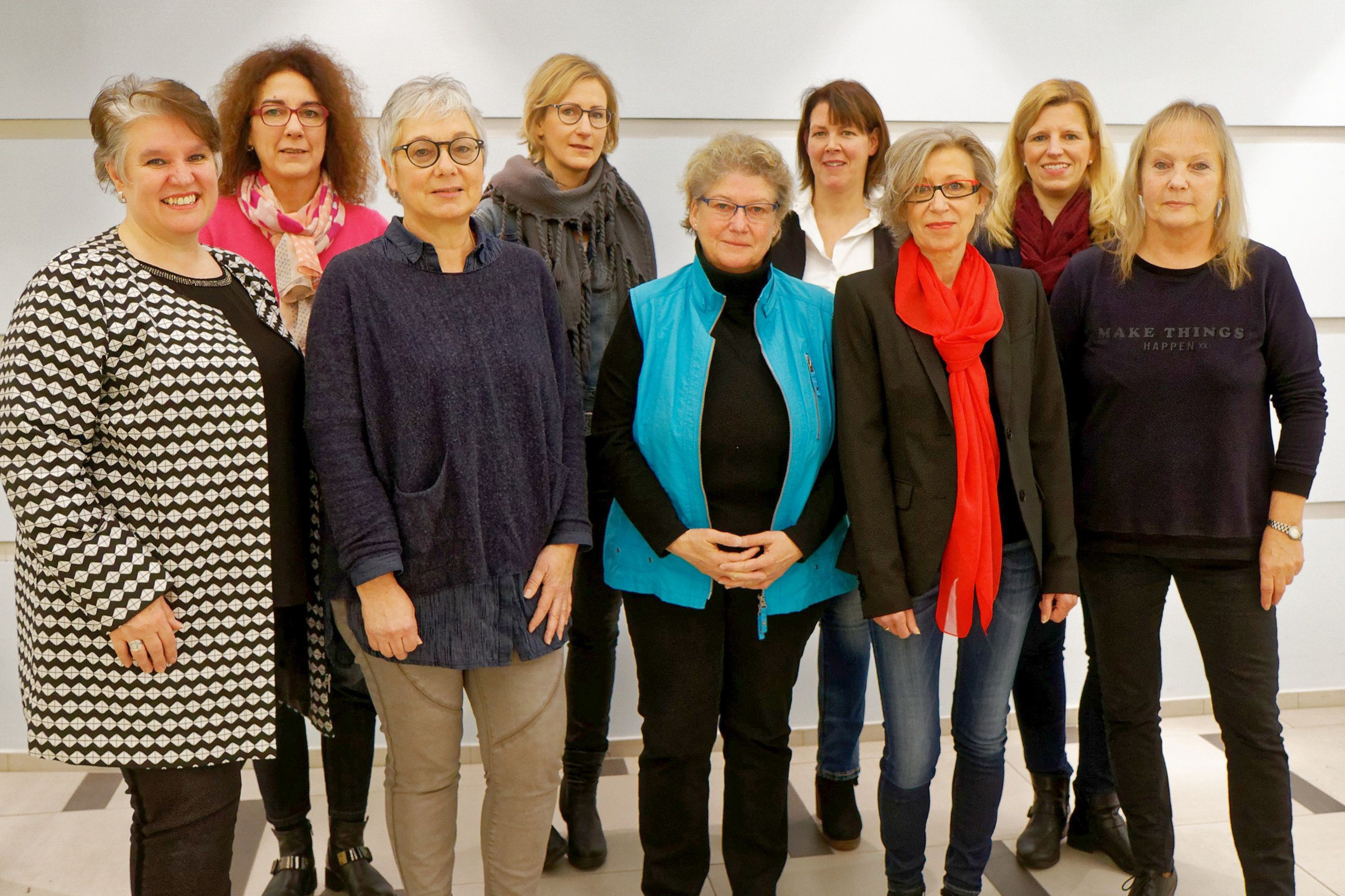 Der Arbeitskreis der Gleichstellungsbeauftragten im Kreis Viersen will Frauen den Wiedereinstieg in den Beruf erleichtern: (v.l.) Barbara Behrendt (Gemeinde Grefrath), Claudia van Hout (Stadt Viersen), Claudia Schinken (Gemeinde Schwalmtal), Christiane Jung (Gemeinde Niederkrüchten), Bettina Gläser-Kurth (Stadt Viersen), Michaela Mevissen (Gemeinde Brüggen), Regina Simonet (Kreis Viersen), Nina Smets (Stadt Nettetal), Gabriele Cuylen (Kreis Viersen). Foto: Kreis Viersen / Abdruck honorarfrei
