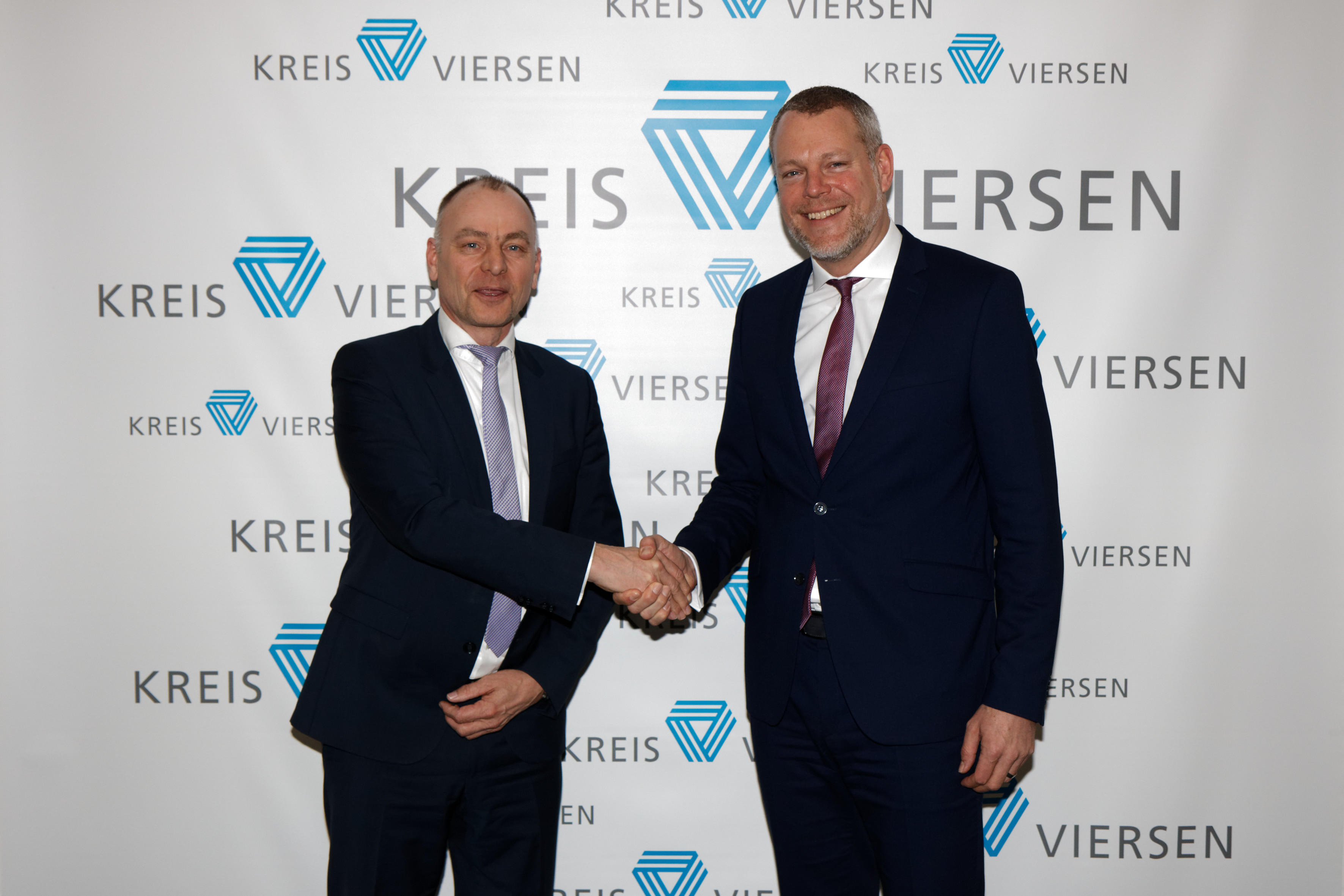 Landrat Dr. Andreas Coenen und der neue Präsident des Landgerichts Mönchengladbach, Siegfried Mielke, haben sich bei ihrem Treffen unter anderem über die Digitalisierung von Behörden ausgetauscht. Foto: Kreis Viersen / Abdruck honorarfrei