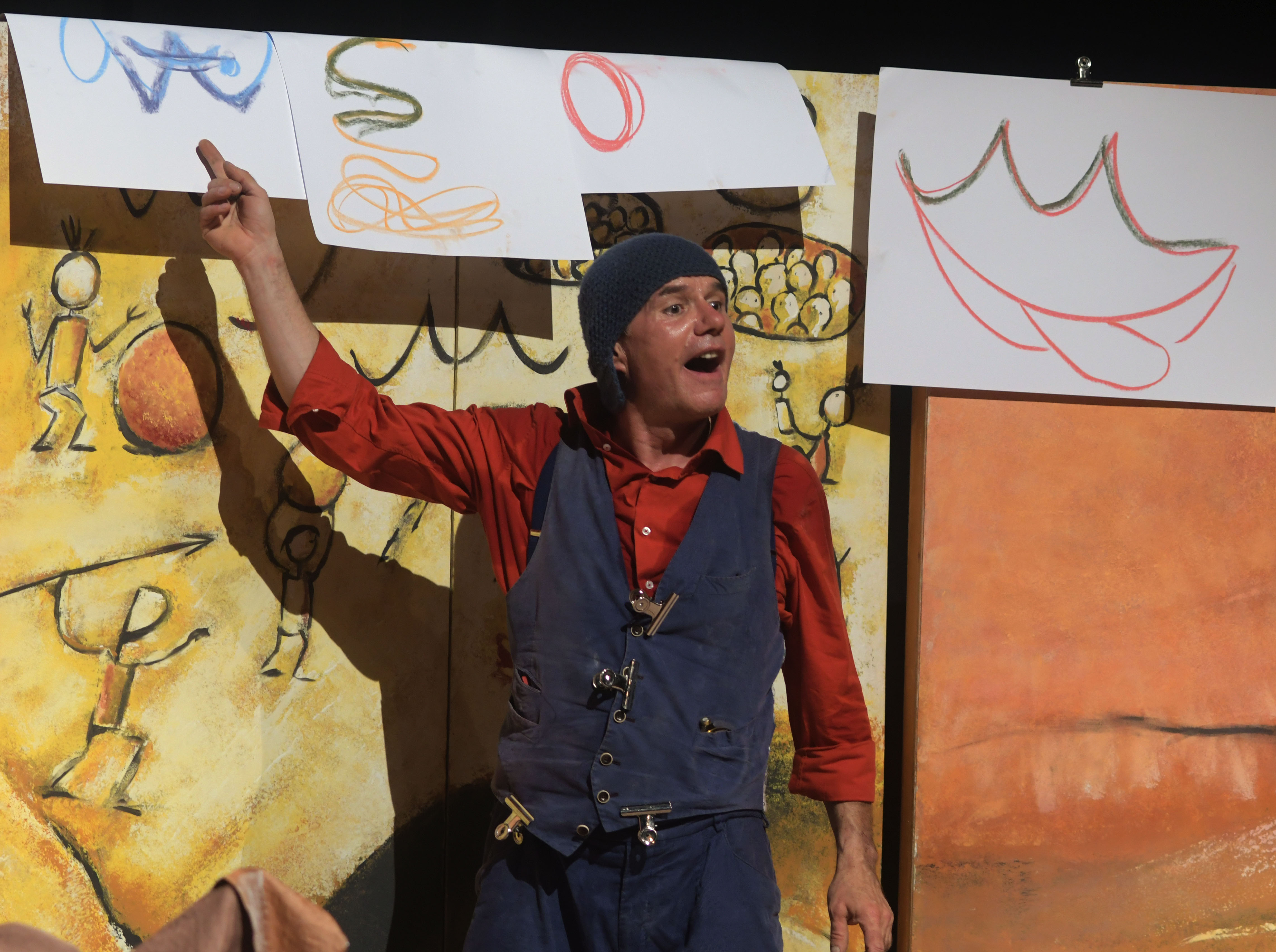 Das Kindertheater Tom Teuer spielt auf Einladung der Stadtbücherei das Stück“ Wie die Buchstaben entstanden.“ Foto: Theater Tom Teuer