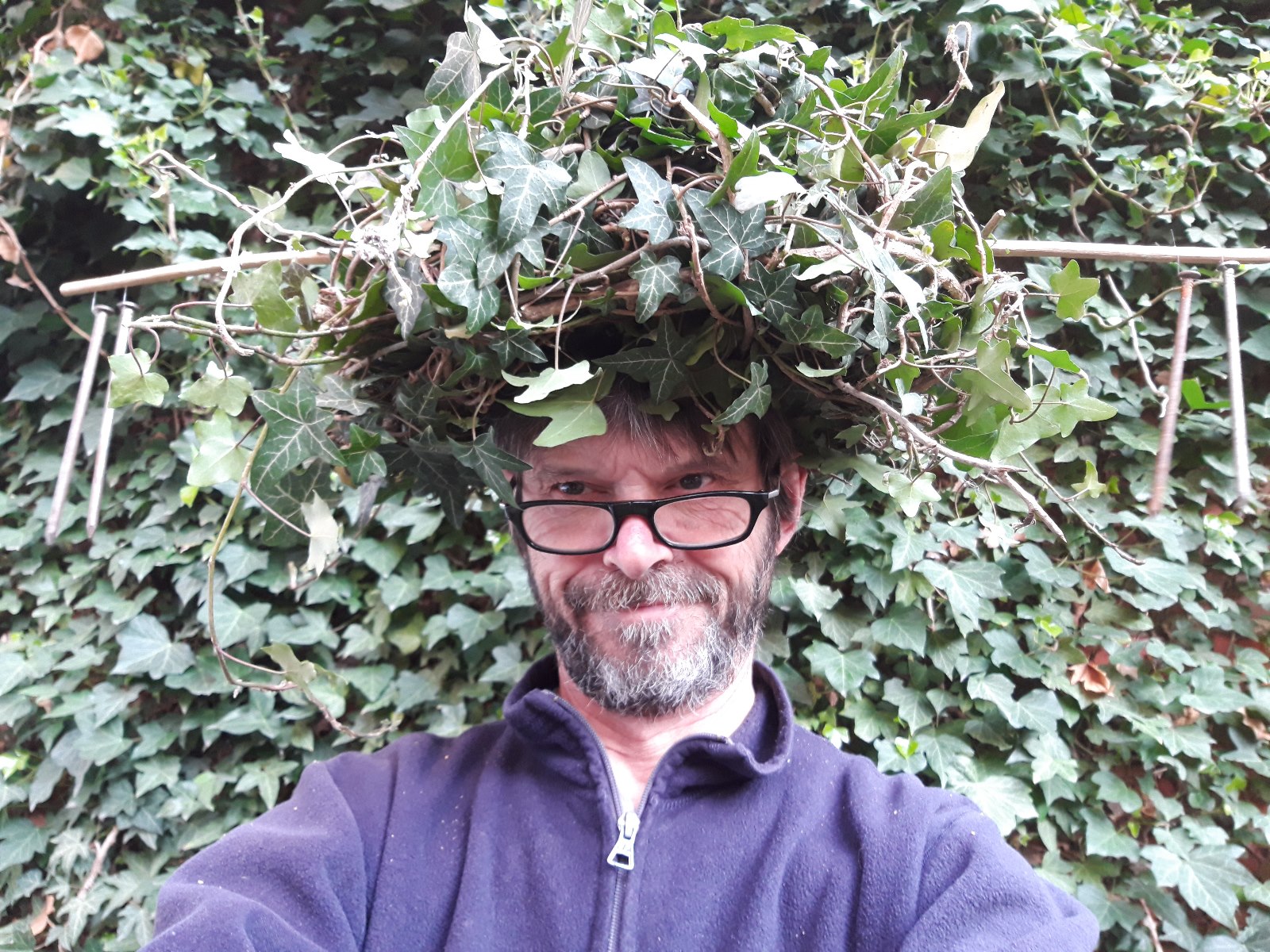 Der belgische Klangkünstler Pierre Berthet (Foto) hängt aus Naturmaterialien gefertigte, phantasievoll klingende Hüte und Handschuhe in Bäume, die vom Publikum benutzt werden können.