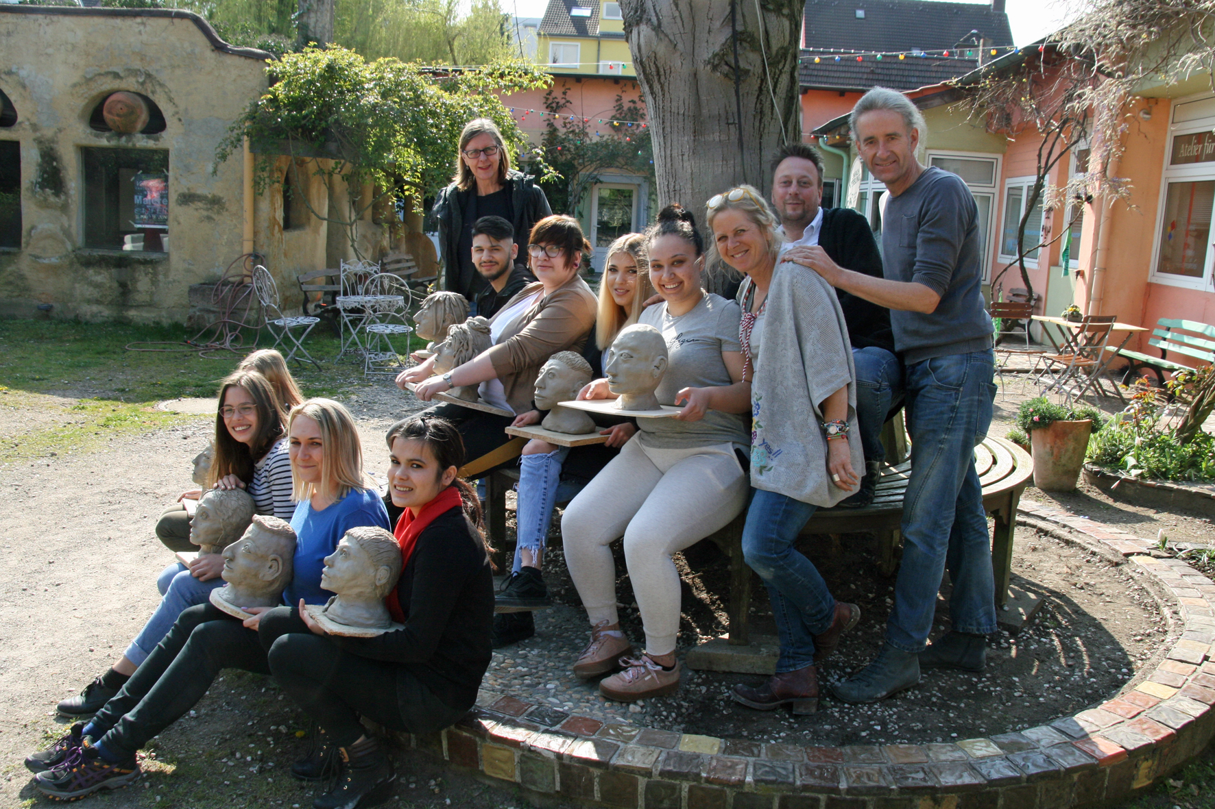 Das Pilotprojekt Kultur macht fit war ein voller Erfolg. Die Teilnehmenden, VHS Leiterin Monika Engel, Thomas Buchenau von der CreativWerkstatt und die Worshop Leitungen Monika Knoop-Tausch und Achim Tausch präsentieren stolz ihre Ergebnisse.
