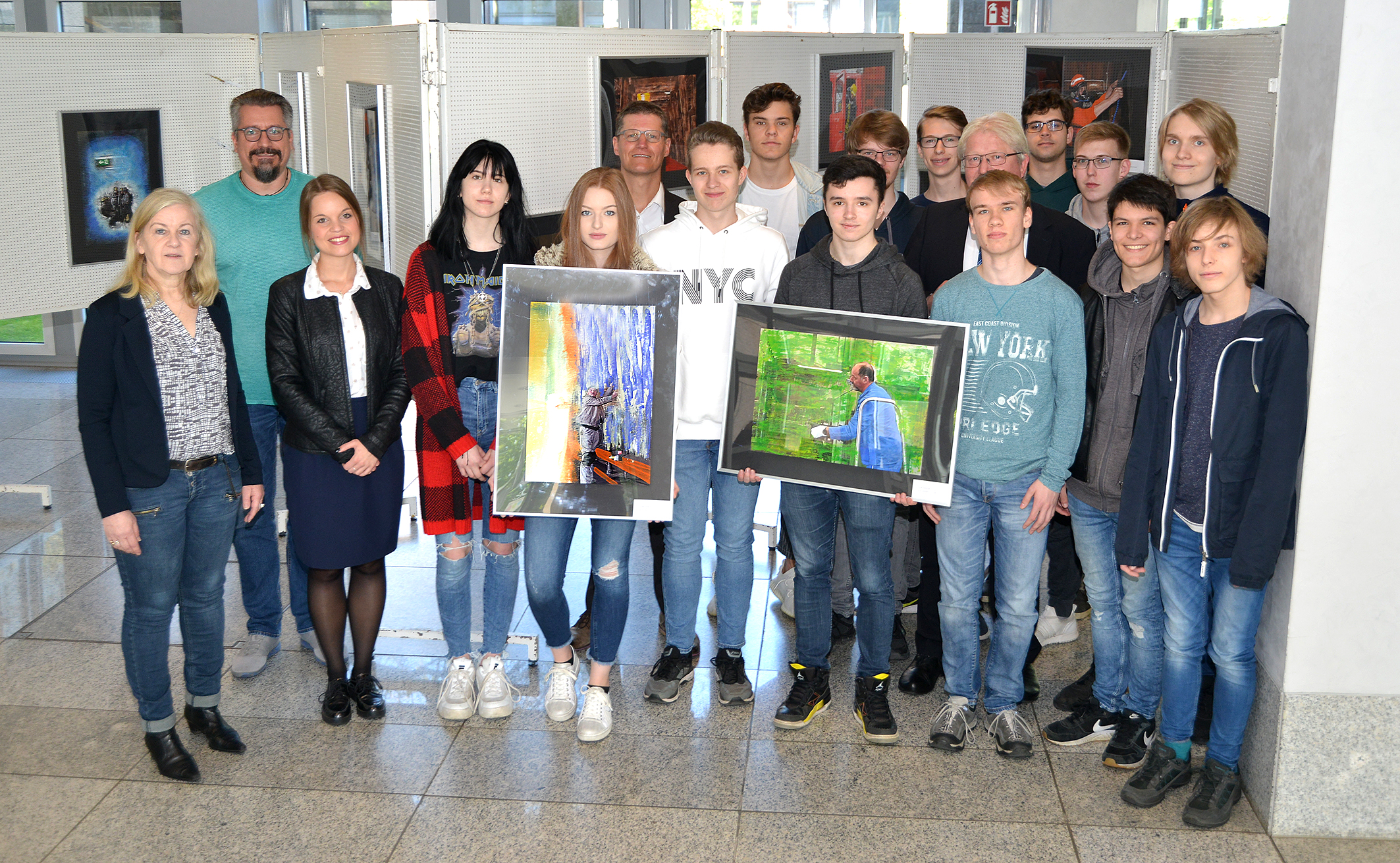 Kreis-Sozial- und Kulturdezernent Tilman Fuchs dankte Projektleiterin Laura Woolfenden sowie Jörg Buhren-Ortmann, Arbeitsdirektor der RAG Anthrazit Ibbenbüren GmbH, für deren Engagement und ganz besonders den Schülerinnen und Schülern des Johannes-Kepler-Gymnasiums, die halfen, die Ausstellung im Kreishaus-Foyer aufzubauen.