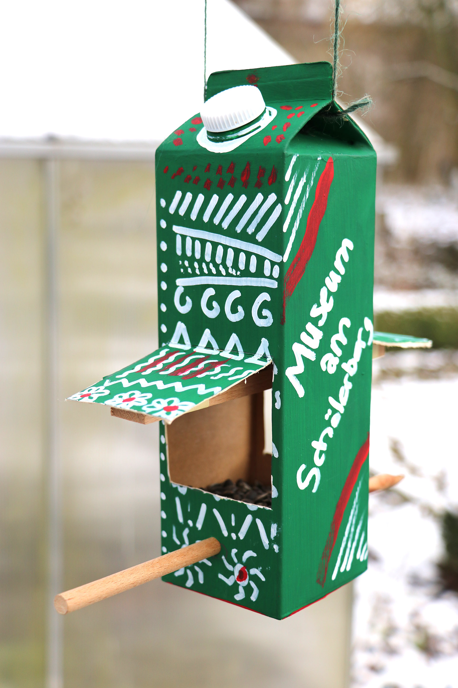 Zu schade für die Tonne – wie man auch aus alten Getränkekartons Futterhäuser für Vögel basteln kann, zeigt die Aktion im Museums am Schölerberg.