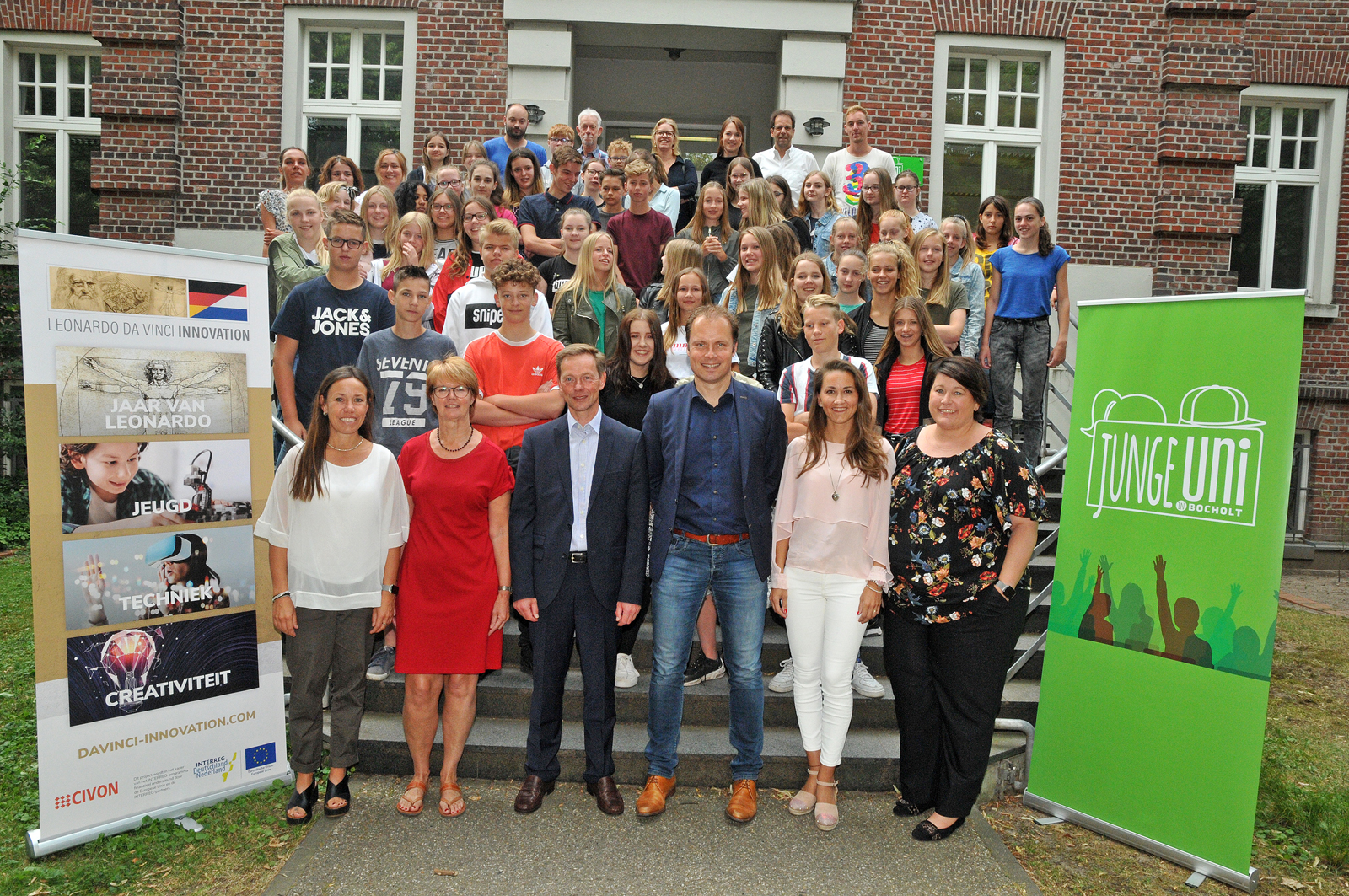"Lernen ohne Grenzen" war am Freitag, 5.7.2019, das Motto der Jugendlichen aus dem niederländischen Aalten und dem deutschen Heek, die an der Jungen Uni in in Bocholt einen "Forschertag" mit vier Workshops erlebten - Foto: Bruno Wansing, Stadt Bocholt