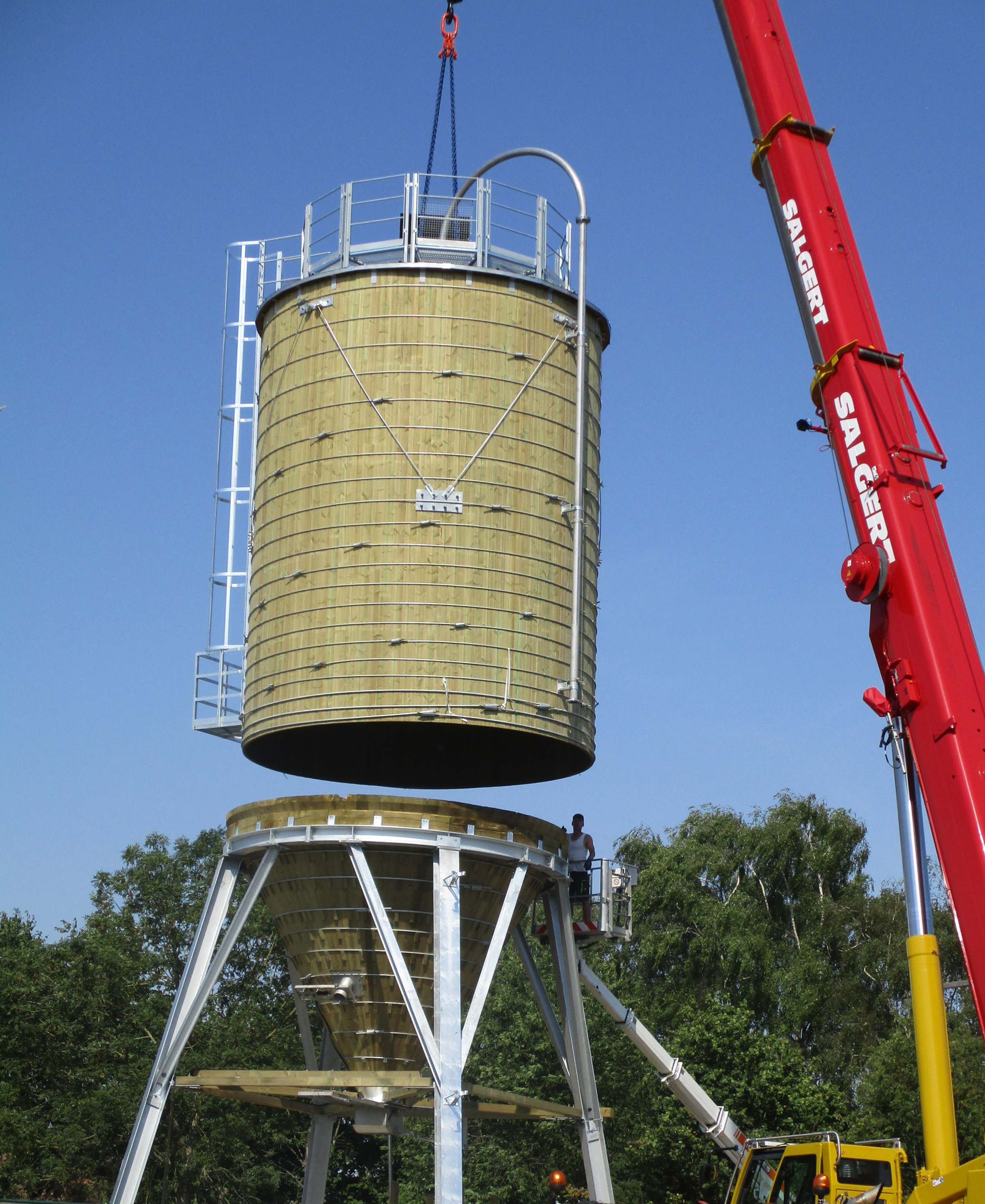 Nach einer Woche sind die Bauarbeitern für das neue Salzsilo abgeschlossen. Nachdem der Auslauftrichter und der Vorratsbehälter montiert wurden, können etwa 180 Tonnen Salz im Silo gelagert werden. Foto: Kreis Viersen/ Abdruck honorarfrei