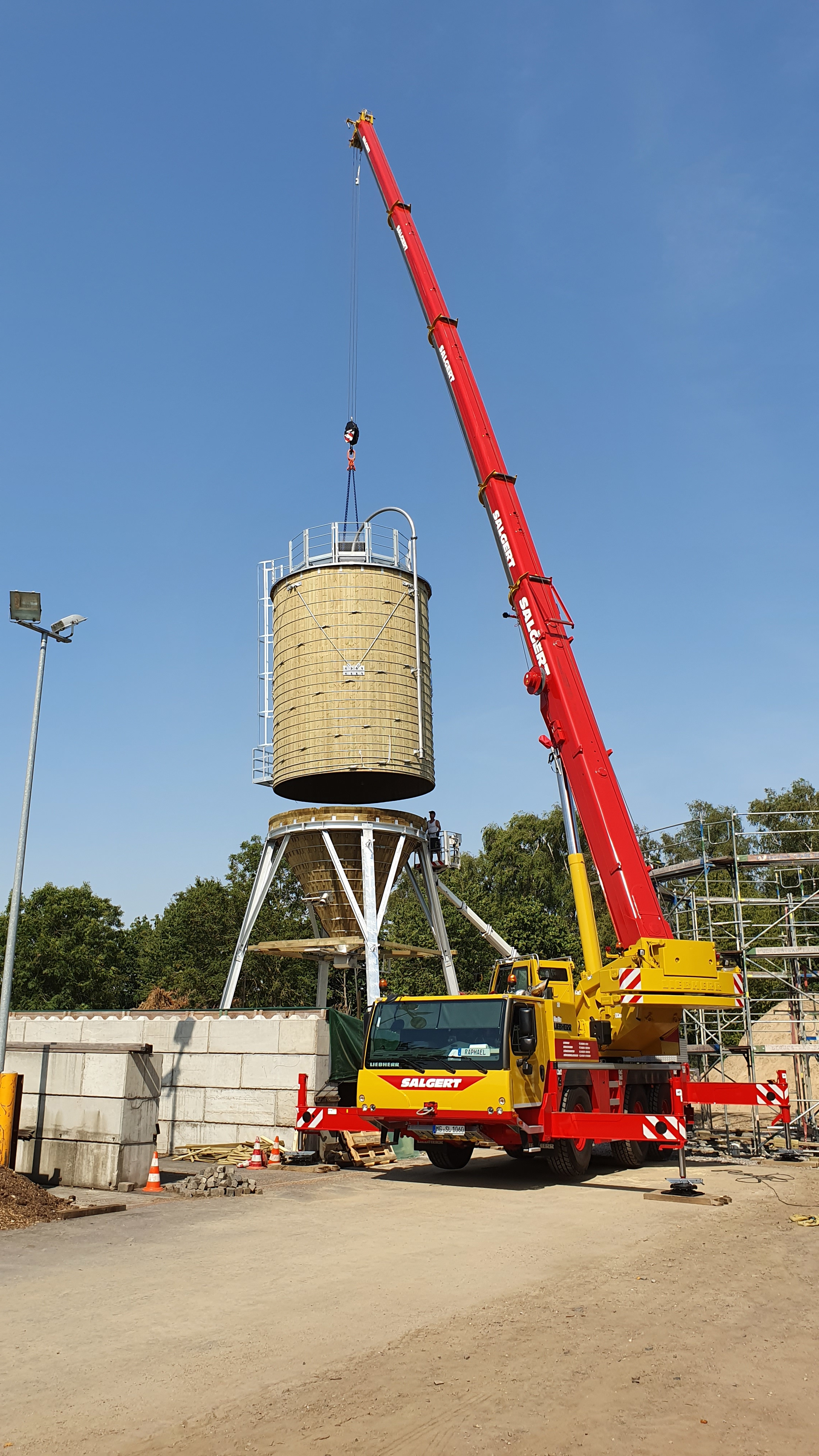 Nach einer Woche sind die Bauarbeitern für das neue Salzsilo abgeschlossen. Nachdem der Auslauftrichter und der Vorratsbehälter montiert wurden, können etwa 180 Tonnen Salz im Silo gelagert werden. Foto: Kreis Viersen / Abdruck honorarfrei