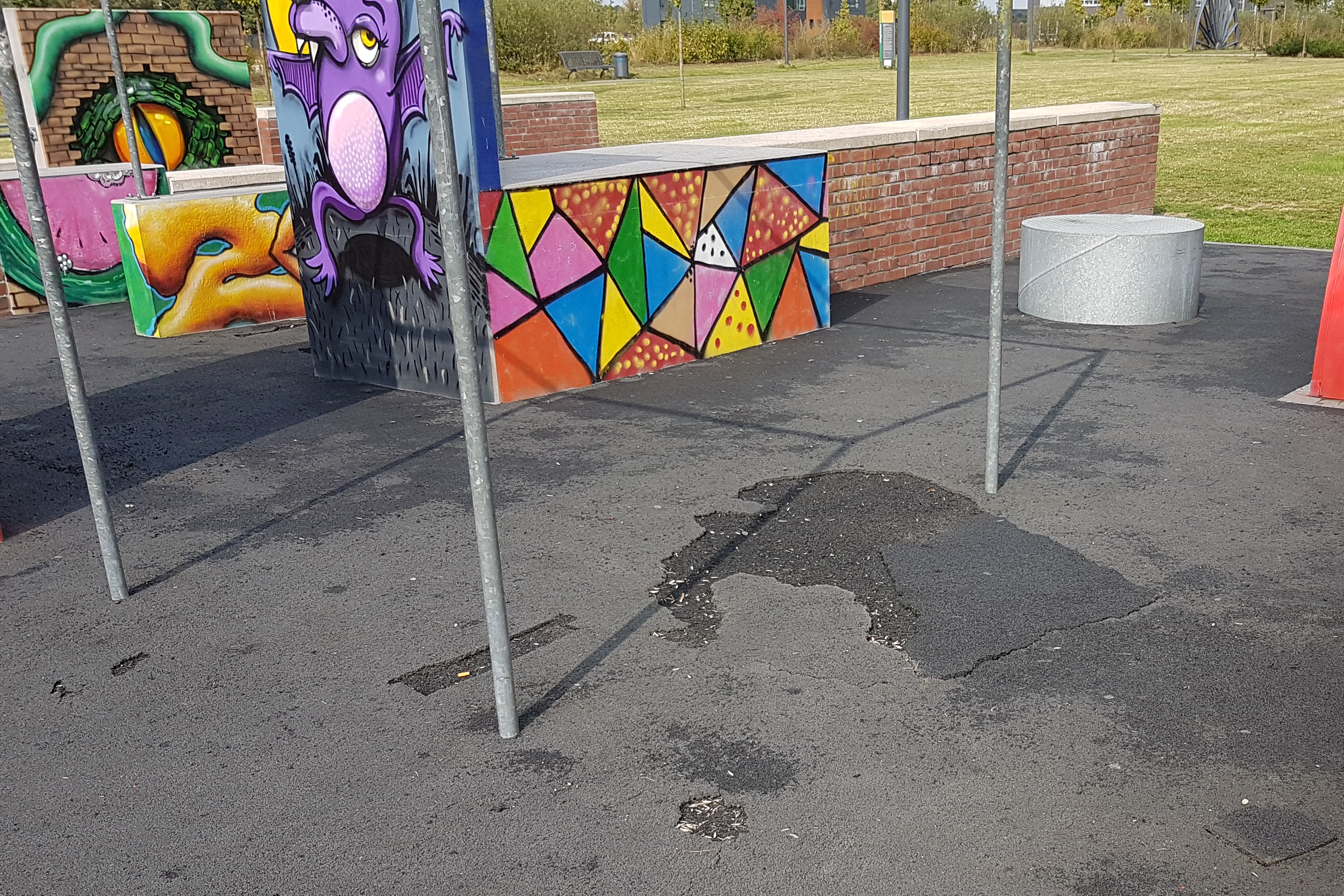 Der Boden der Parkouranlage ist kaputt. Die Reparaturen werden noch dauern. Bis dahin bleibt die Anlage gesperrt.