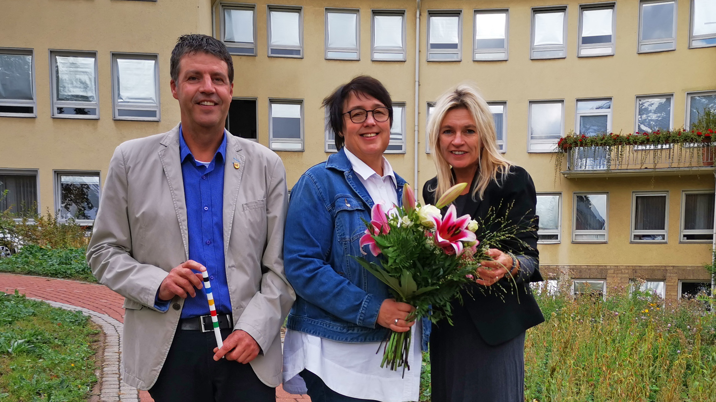 Staffelstabübergabe beim Landkreis Peine: Maik Zilling ist neuer Leiter des Jugendamtes. Andrea Pape (Mitte) erhielt als Dank für ihre Tätigkeit als kommissarische Jugendamtsleiterin einen Blumenstrauß von Sozialdezernentin Prof. Dr. Andrea Friedrich.