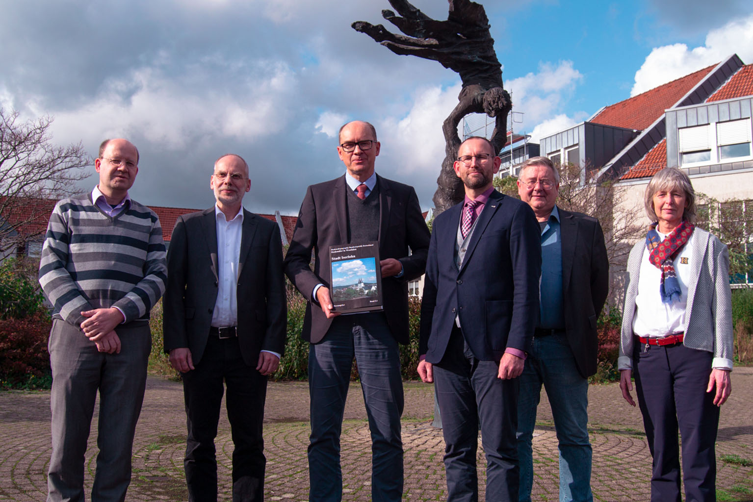 Erläuterten das Projekt „Denkmaltopographie für Iserlohn“ (v.l.): Kunsthistoriker Dr. Jörg Niemer, Dr. Michael Huyer (Referatsleiter beim LWL), Landeskonservator Dr. Holger Mertens, Stadtbaurat Thorsten Grote, Matthias Wehner, Abteilungsleiter Bauordnung und Denkmalpflege, und die Leiterin des Bereiches Städtebau Gabriele Bilke.