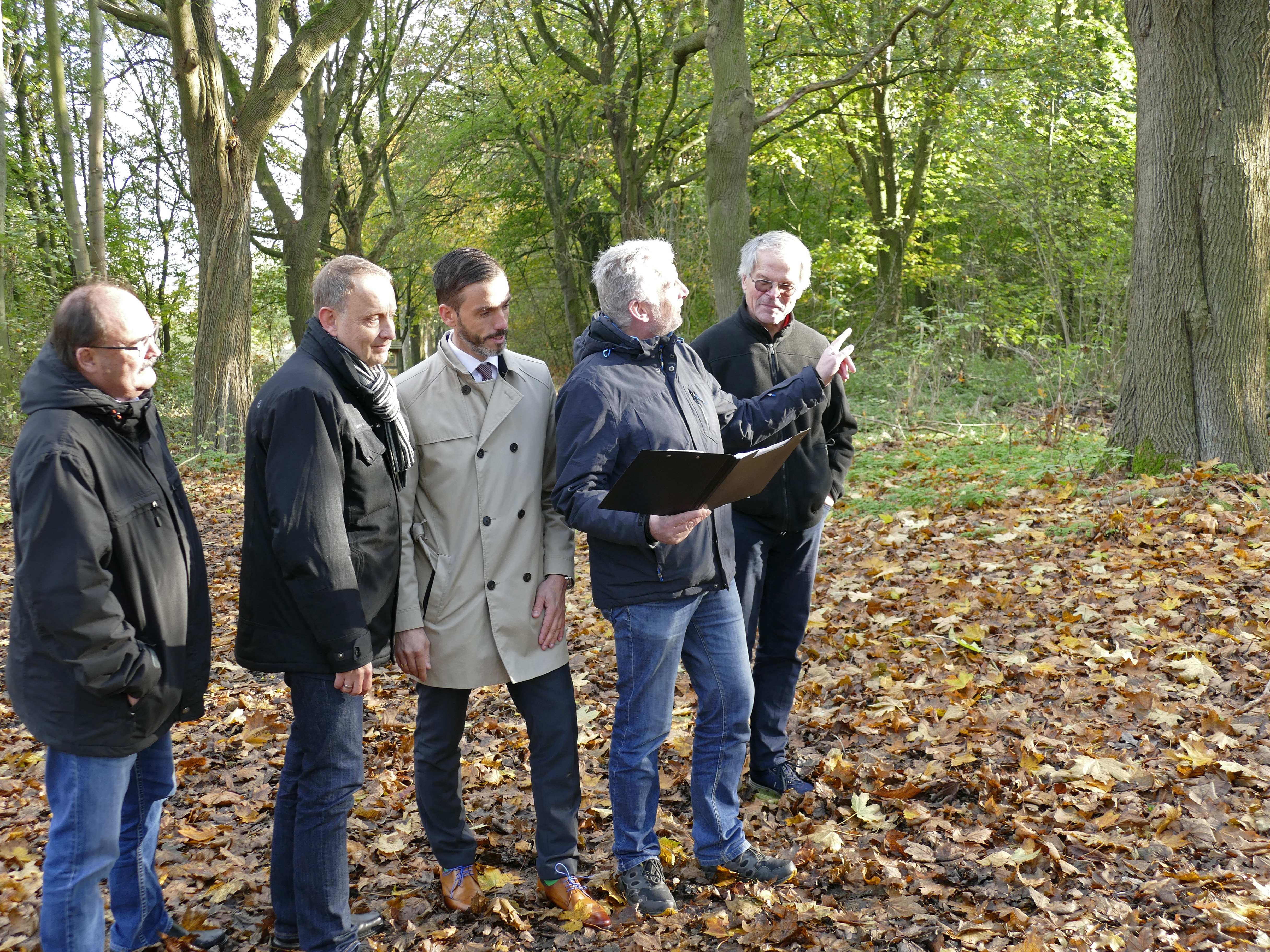 Vertreter der Stadt und des Landkreises Peine sahen sich mit dem Sachverständigen Dr. Reiner Theunert die Bäume im Herzberg an.