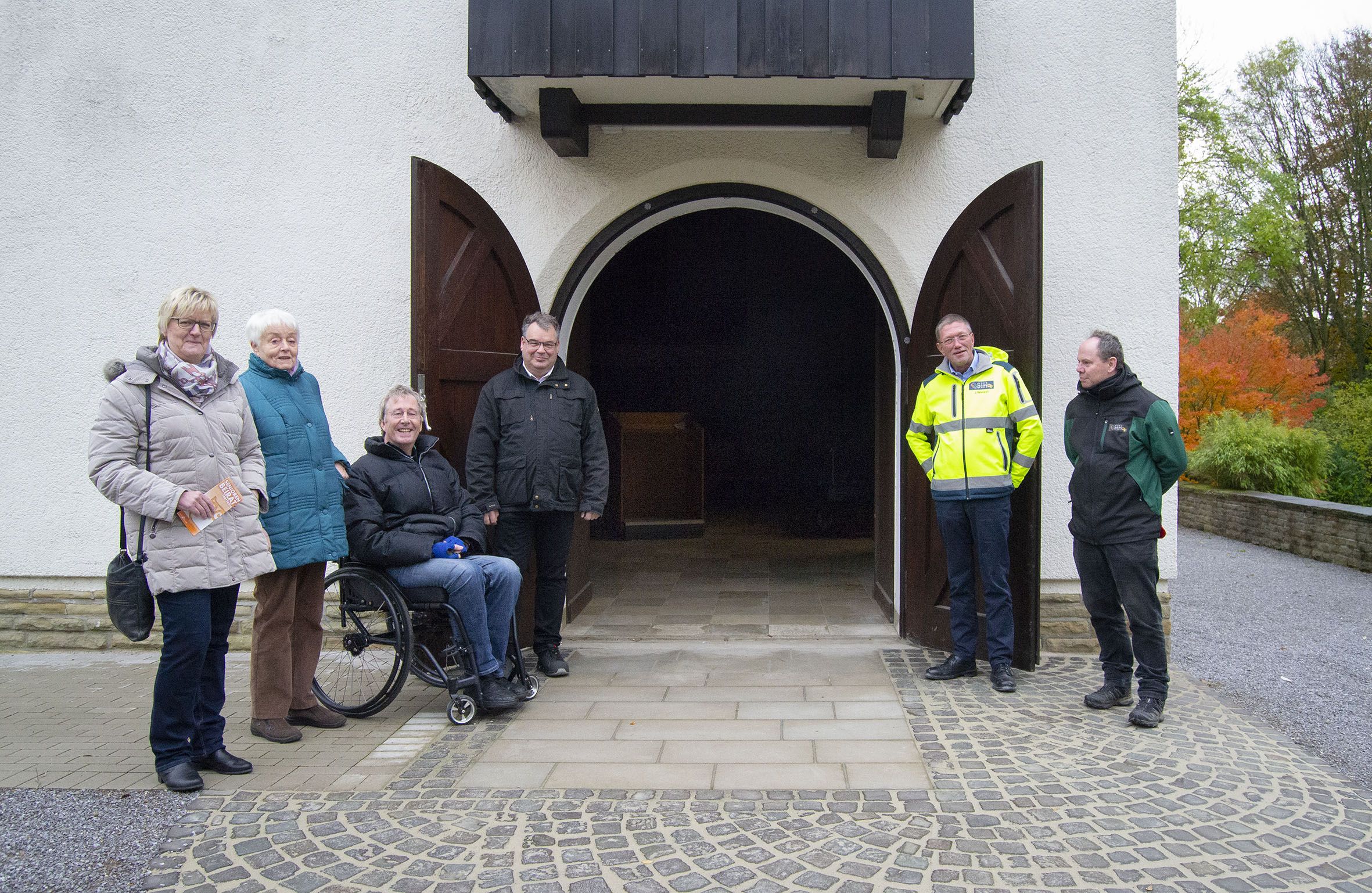 Bei einem Ortstermin ließen sich Uta Lichtenheldt-Leisgen und Ursula Buddruweit vom Seniorenbeirat und Peter Martin vom Beirat für Menschen mit Behinderung das Ergebnis der Umgestaltung von SIH-Vorstand Axel Raue und den SIH-Mitarbeitern Joachim Wetzel und Eckard Baus zeigen (von links).