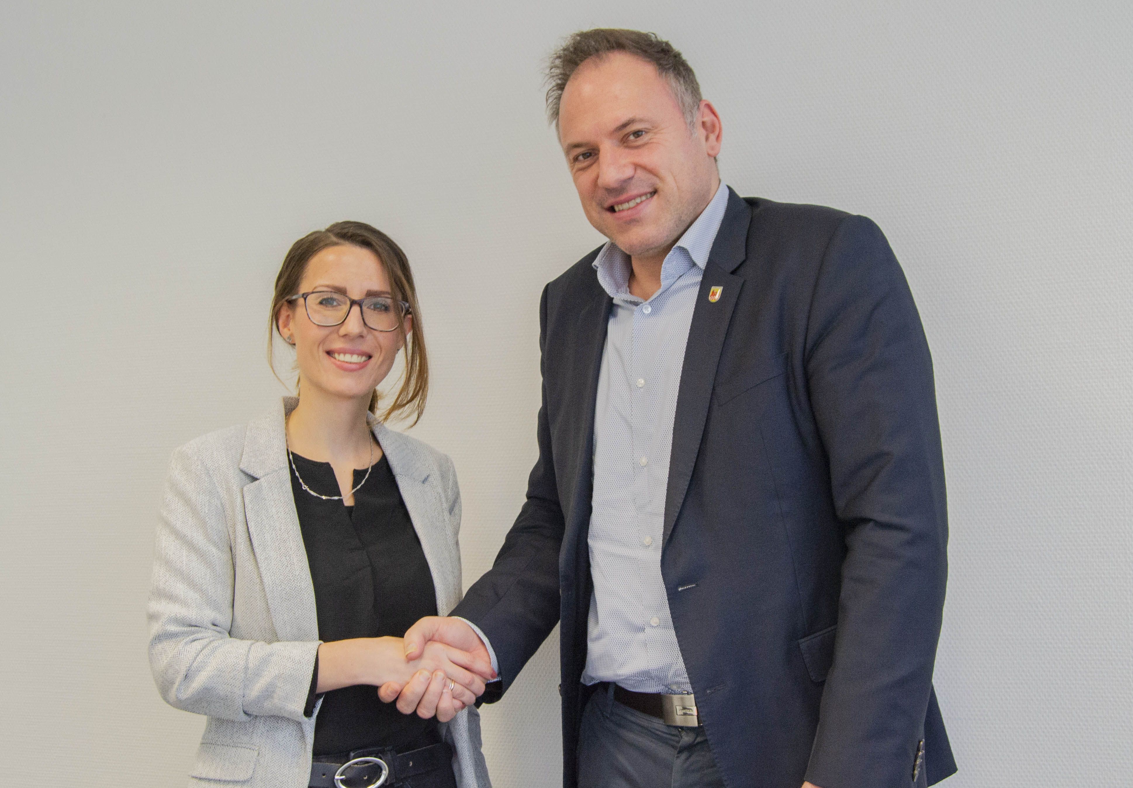 Michael Wojtek, Erster Beigeordneter und Stadtkämmerer, stellte Patricia da Cruz Santos im Rahmen eines Pressegespräches als neue Gleichstellungsbeauftrage der Stadt Iserlohn vor.