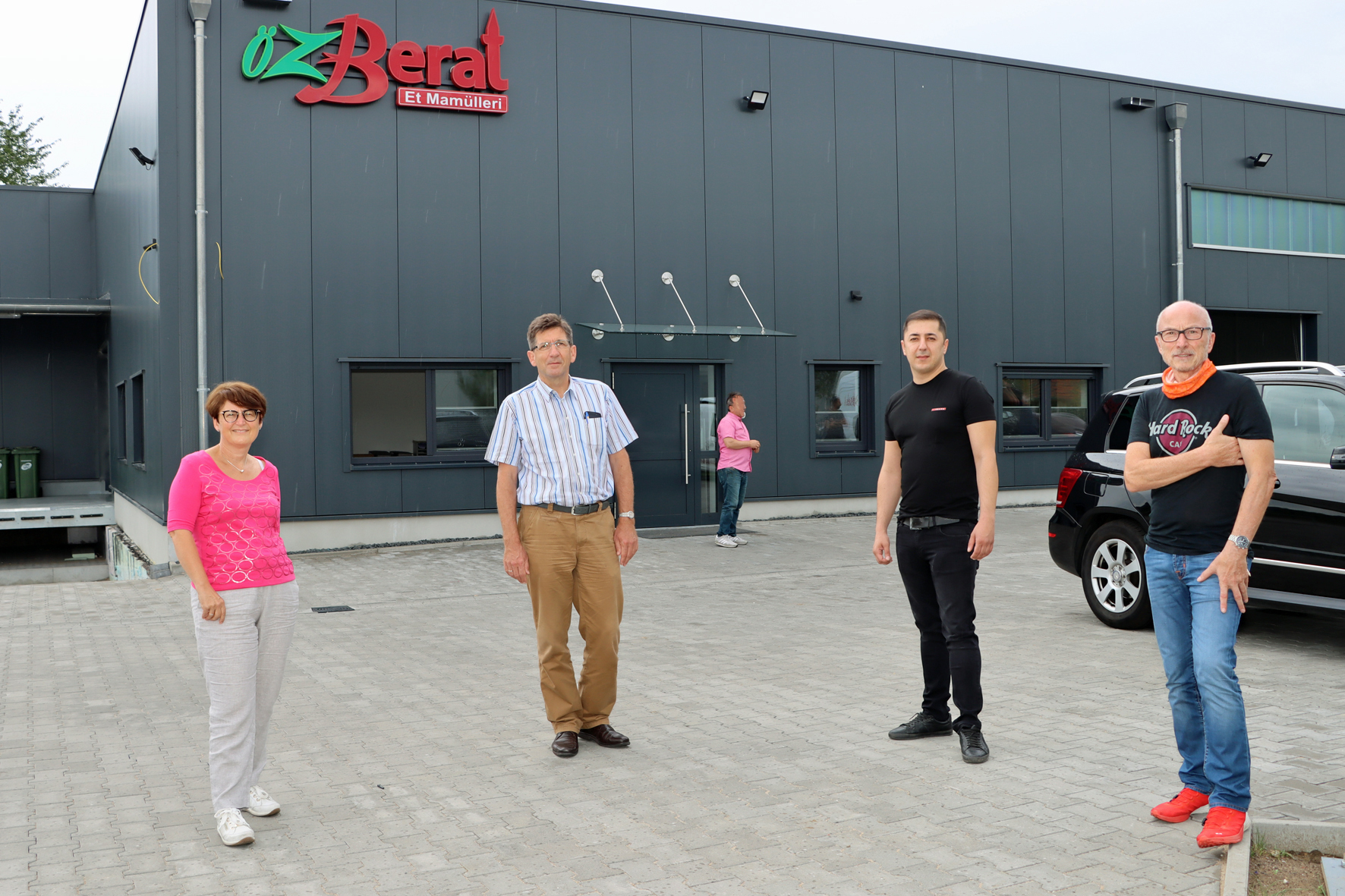 (v. li. n. re.:) Peter und Sandra Richter (Geschäftsführung Förder- und Materialflusstechnik GmbH), Bürgermeister Fred Toplak, Michael Blume (Wirtschaftsförderung Stadt Herten), Benedikt Schmoll (Geschäftsführer EGSE) und Frauke Wiering (Wirtschaftsförderung Stadt Herten) besichtigten das neue Gebäude auf Schlägel & Eisen.