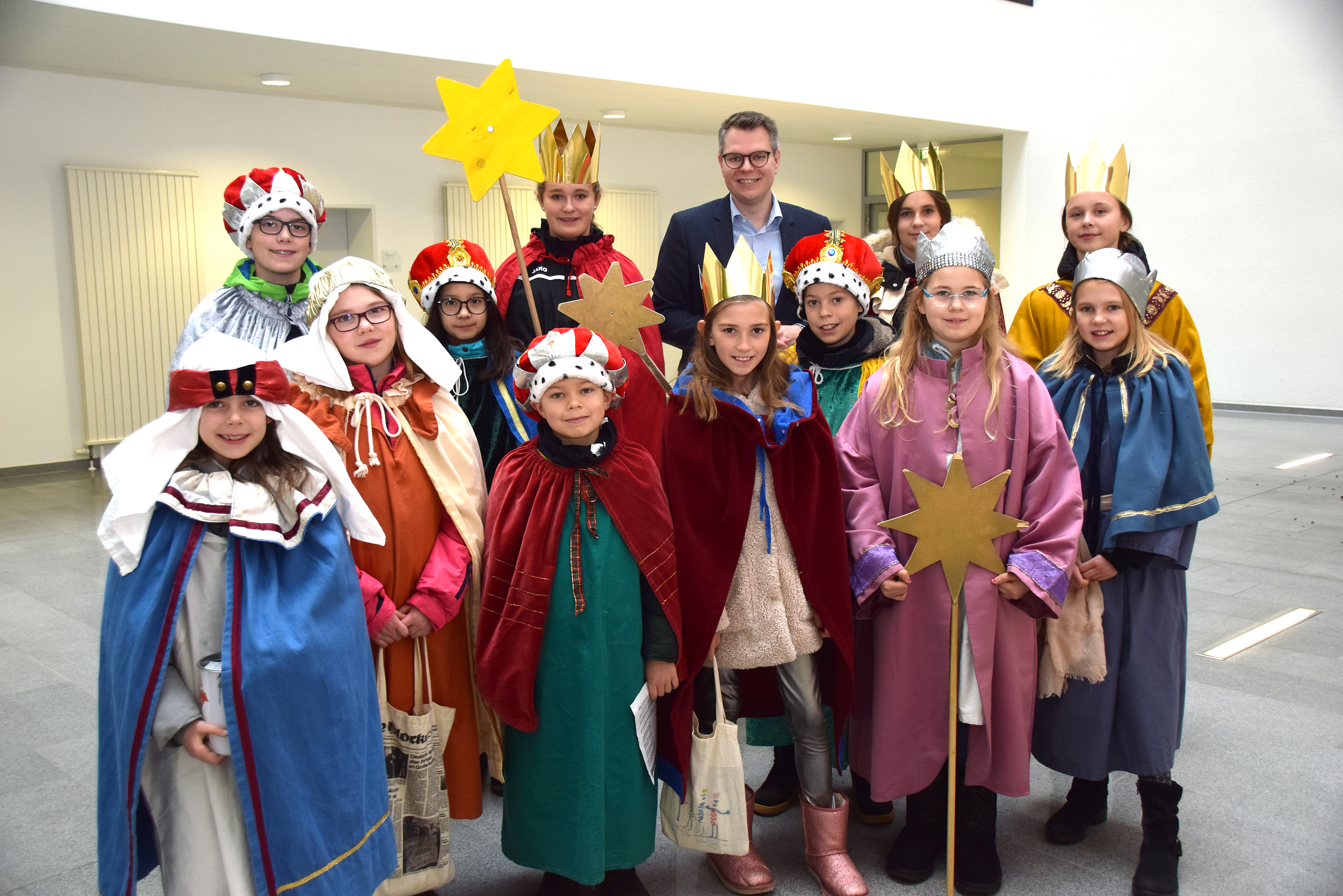 Bildzeile: Kreisdirektor Mike-Sebastian Janke begrüßte die Sternsinger im Kreishaus und wünschte ihnen viel Erfolg bei ihrer Aktion. Foto: Birgit Kalle - Kreis Unna