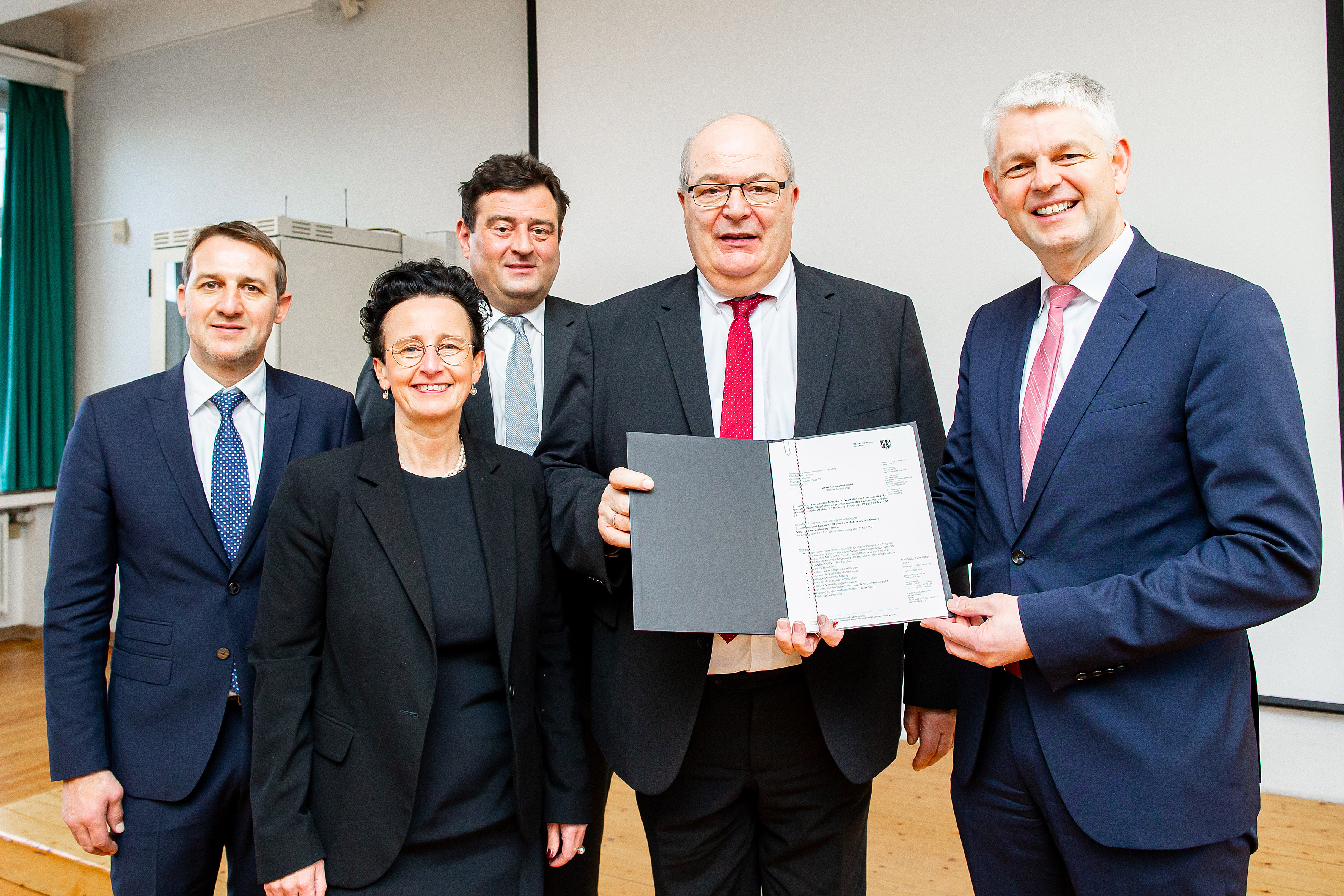 von links: Burkhard Häger (Leiter ESBK), Schuldezernentin Dr. Britta Obszerninks, Mathias Richter (Schulstaatssekretär), OB Thomas Hunsteger-Petermann, Christoph Dammermann (Wirtschaftsstaatssekretär)