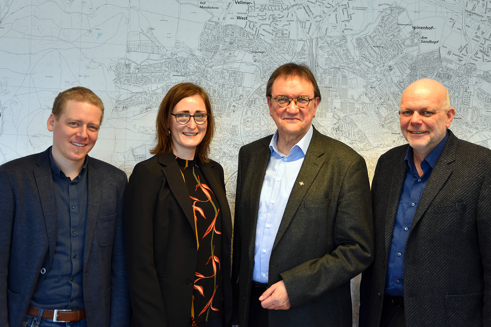 Stellten die Arbeit des Kasseler Klimaschutzrats vor (von links): Timo Eckhardt (Klimaschutzmanager/Umwelt- und Gartenamt), Dr. Anja Starick (Leiterin des Umwelt- und Gartenamts), Prof. Dr. Martin Hein (Bischof em. der Evangelischen Kirche von Kurhessen-Waldeck) und Stadtbaurat Christof Nolda.