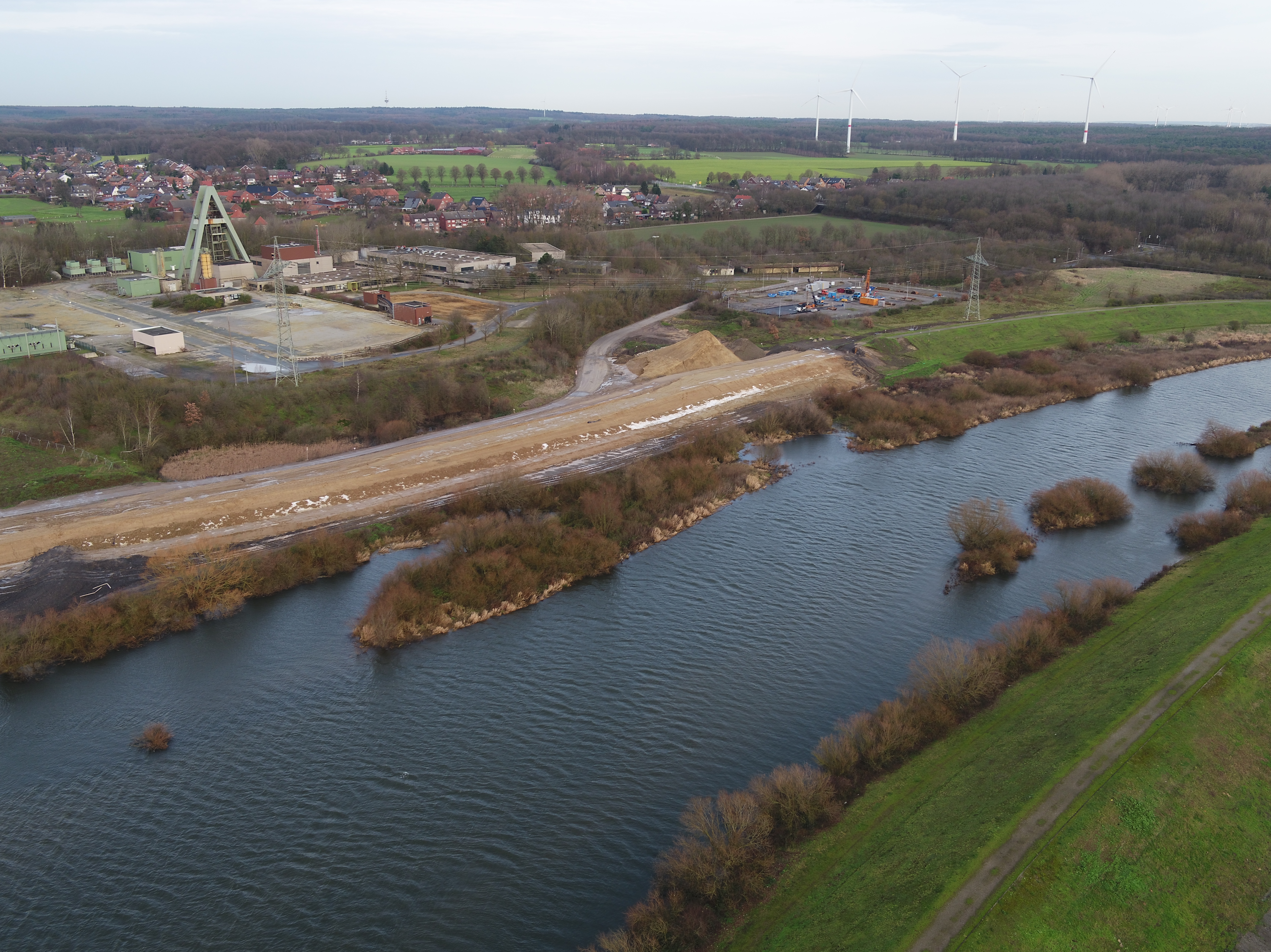 HaLiMa: Im Bauabschnitt Nord I erfolgt der Deichanschluss im Bereich Auguste Victoria. Der neue Deich schließt sich an den Bestandsdeich (rechts) an.