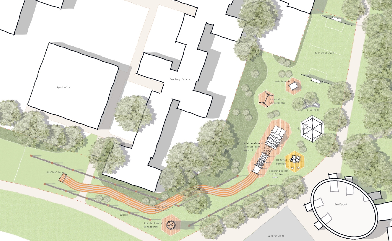 Der erste Entwurf zeigt, wie der Spielplatz auf dem kubaai-Gelände aussehen könnte.