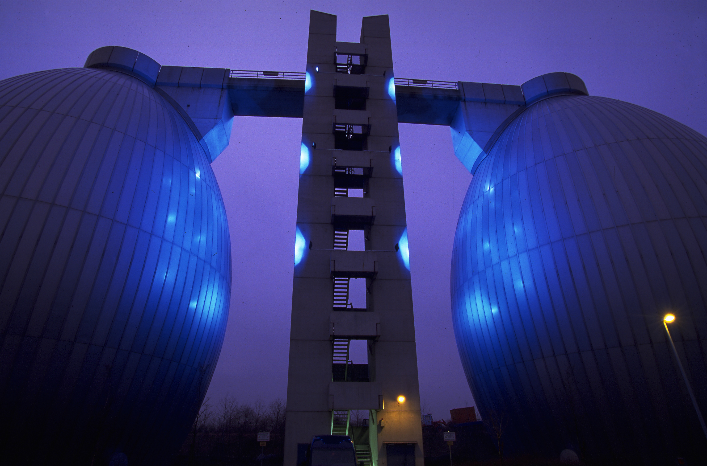 Die beiden Faulbehälter der Kläranlage der Emschergenossenschaft in Dortmund-Deusen.