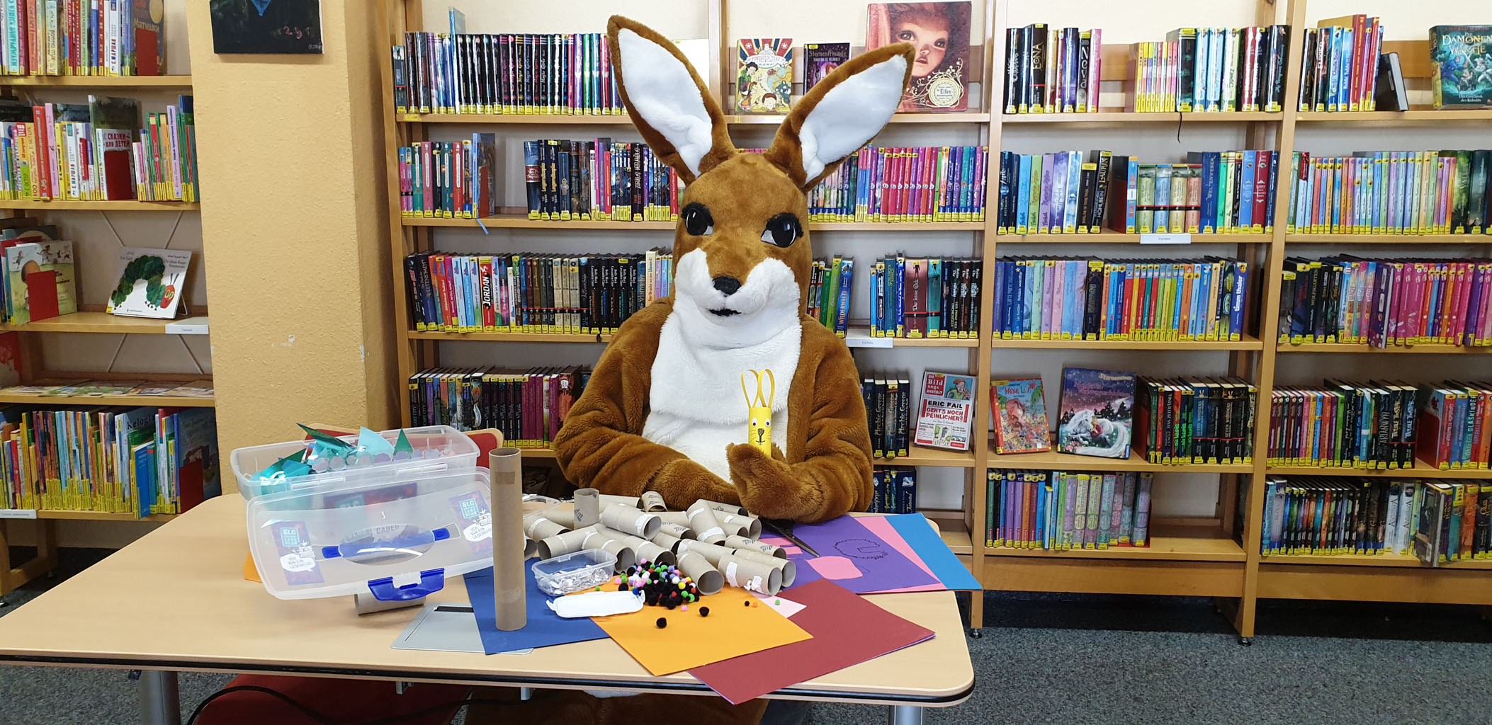 „Kessy“ das Bücherei-Känguru freut sich über viele Bilder von Bastelarbeiten oder über selbst geschriebene Geschichten der Kinder.