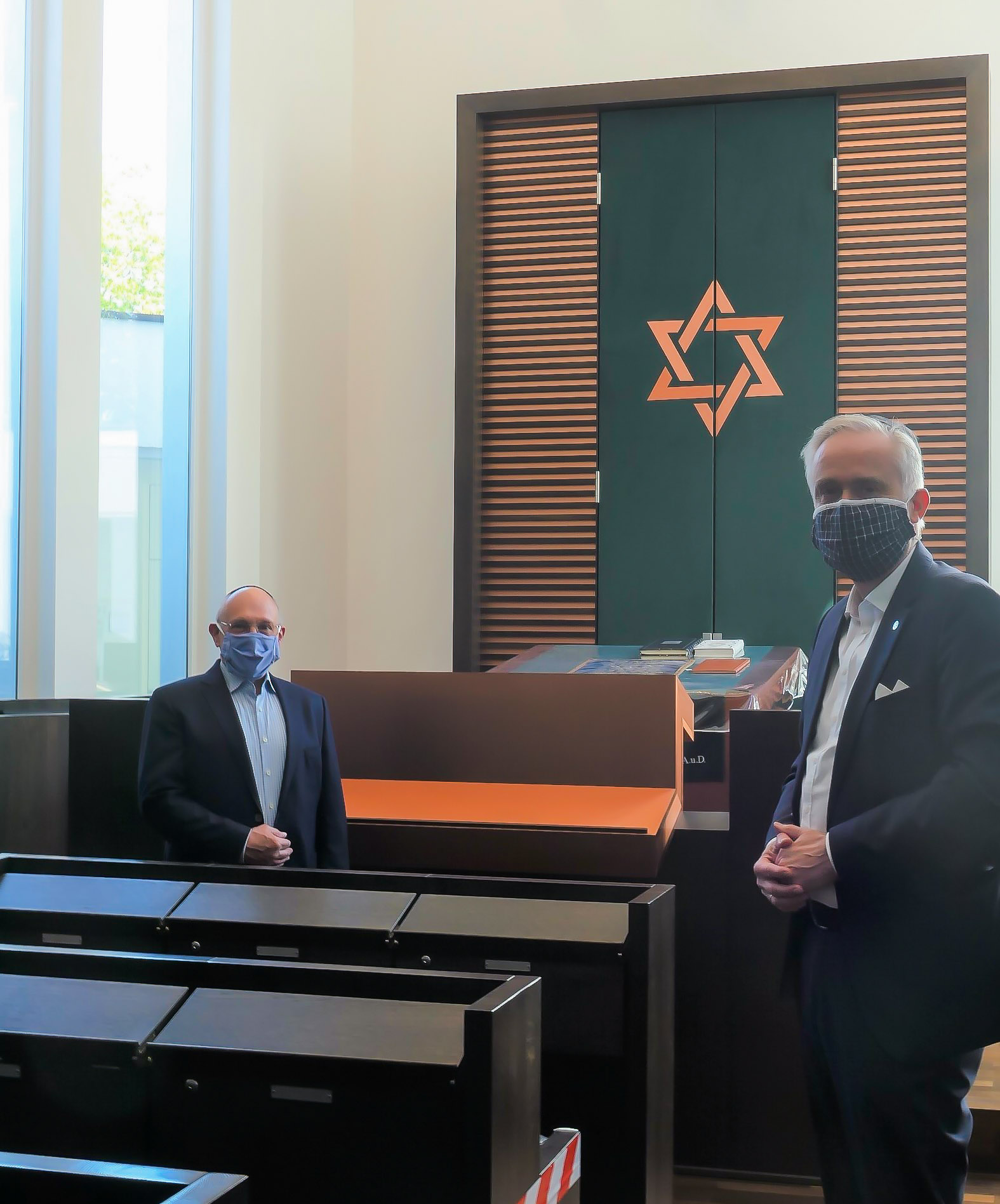 Oberbürgermeister Wolfgang Griesert (rechts) und der Vorsitzende der jüdischen Gemeinde Osnabrück, Michael Grünberg, haben sich über den Neustart des religiösen Lebens in der jüdischen Gemeinde unterhalten.