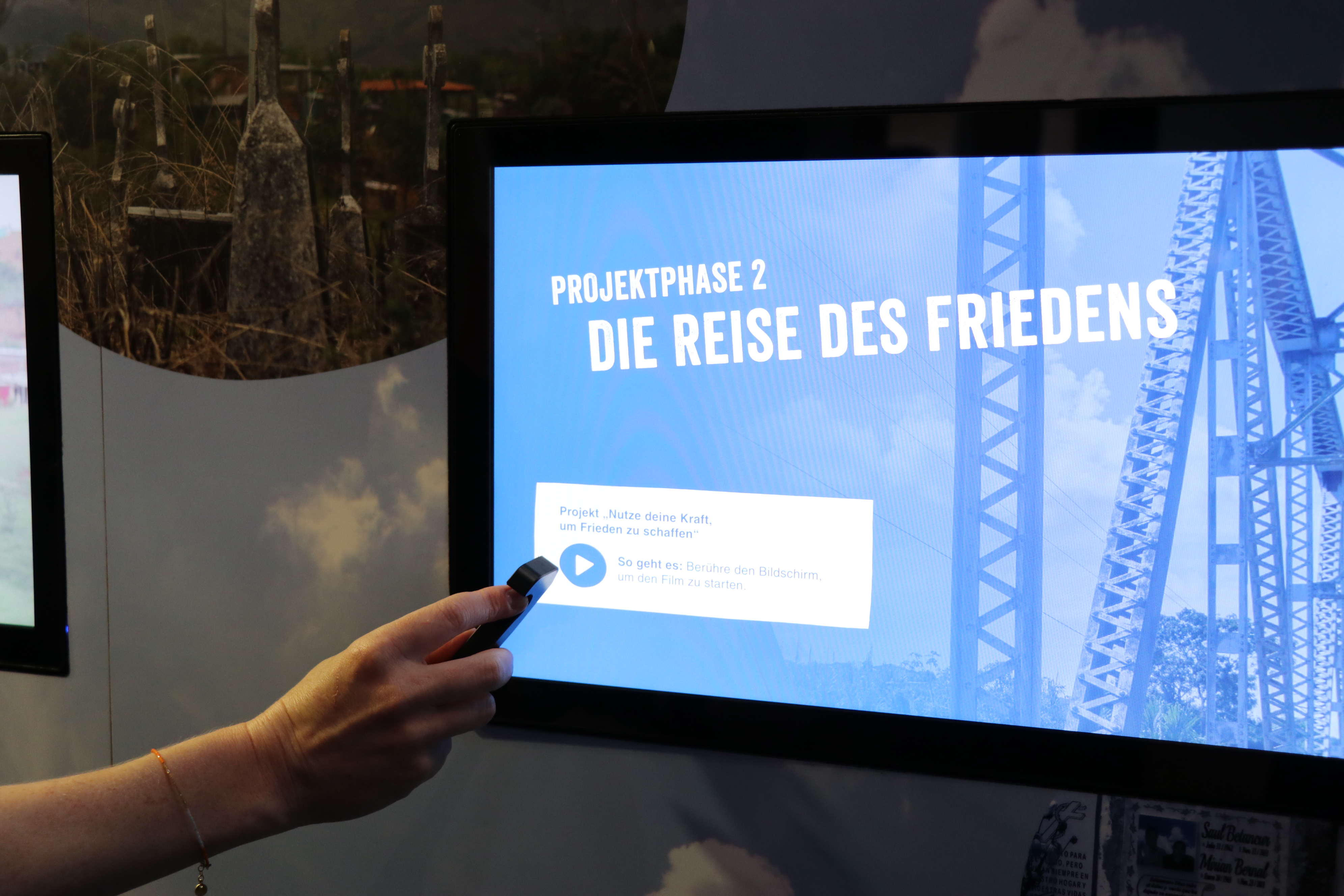 Mit dem Pen-Y, einem sicheren Eingabestift, werden die Touchscreens der Erlebnisaus-stellung „Mission 2030“ im Museum am Schölerberg kontaktfrei bedient.