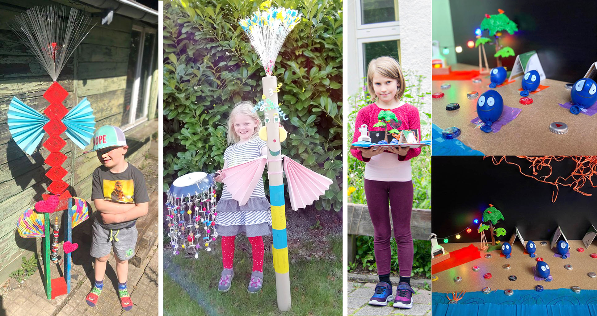 Viele kleine Kunstwerke sind bei der Aktion “Art-Bag” entstanden. Die Gewinner Ben, Ida und Maya präsentieren ihre Werke.