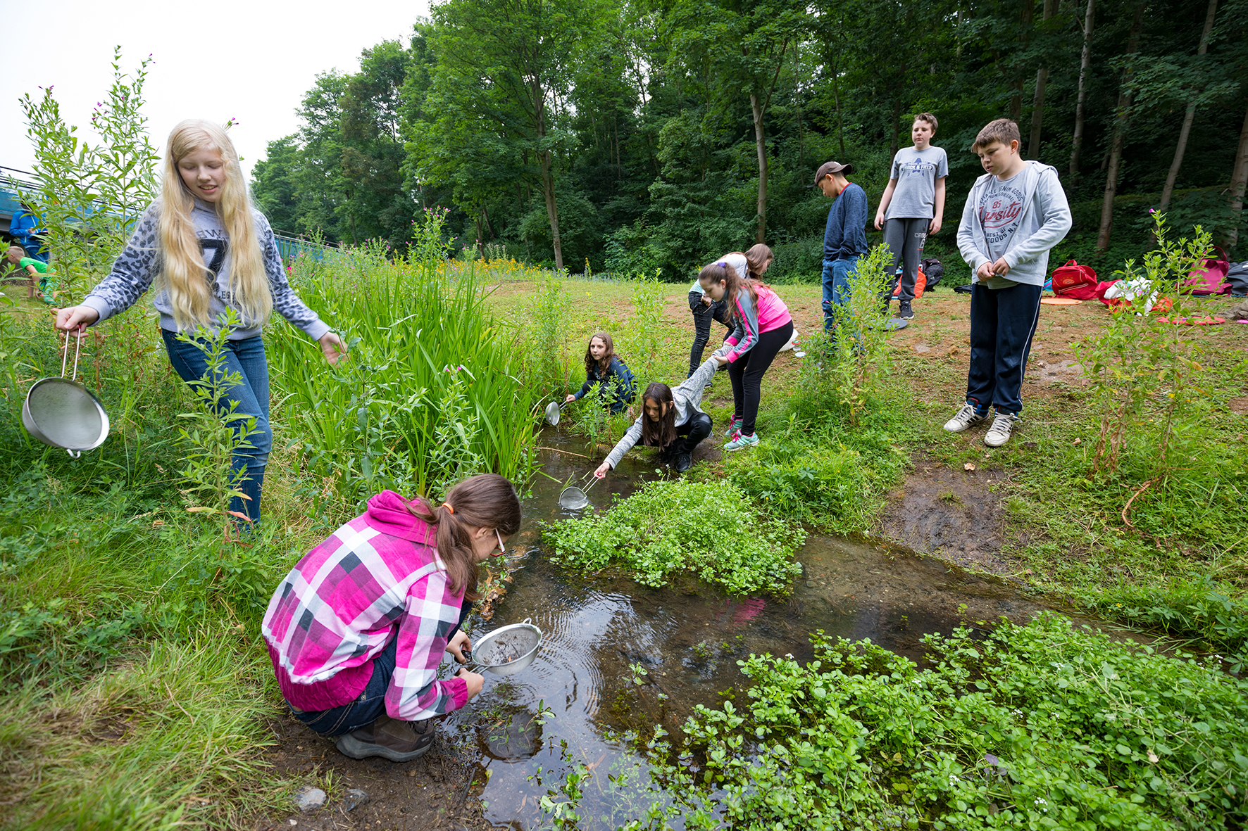 Am Gewässerufer können Kinder die Tier- und Pflanzenwelt unter die Lupe nehmen.