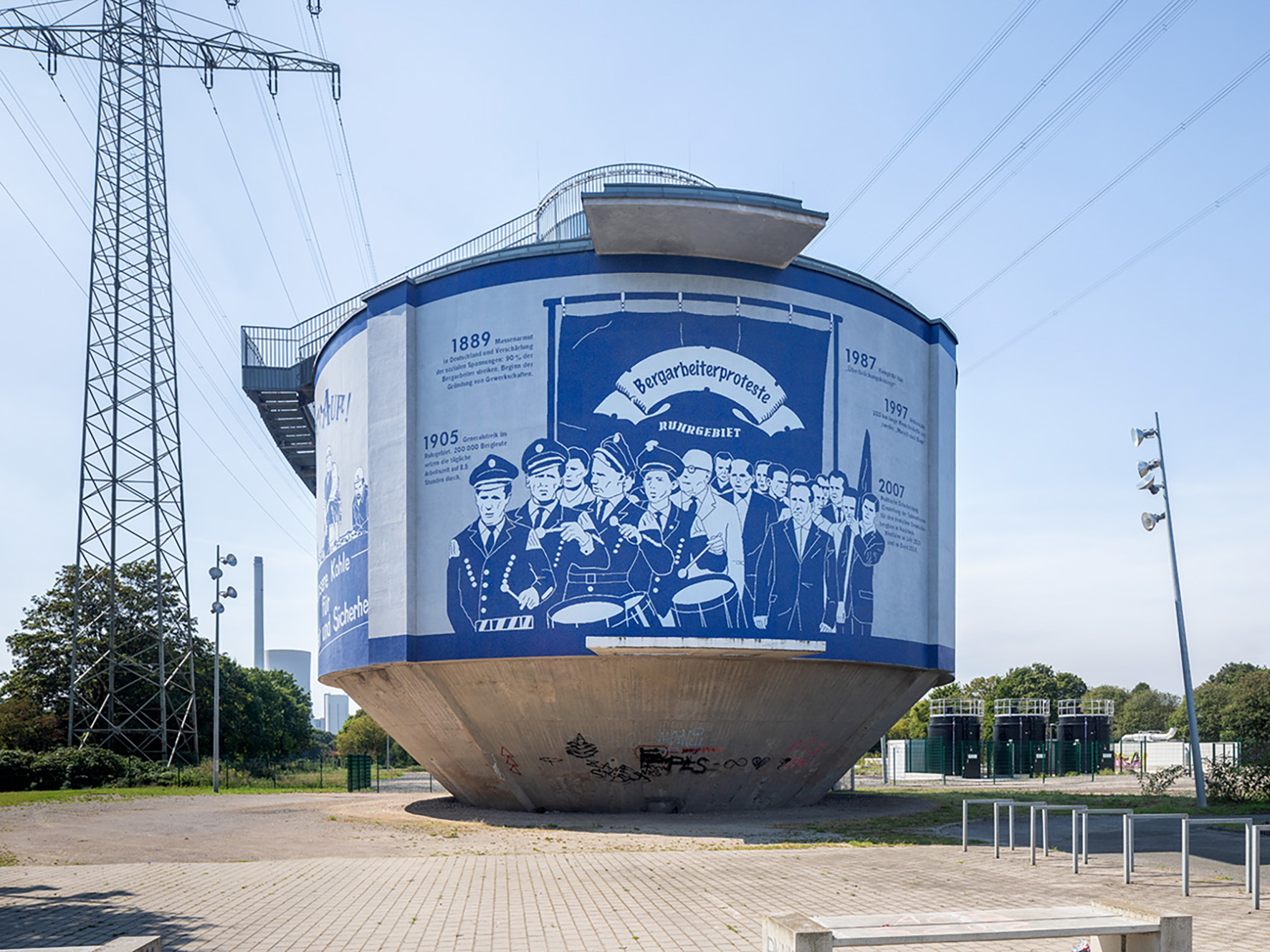 Auf der ehemaligen Kläranlage in Herne befindet sich die Arbeit von Silke Wagner „Glückauf! Bergarbeiterproteste im Ruhrgebiet“.
