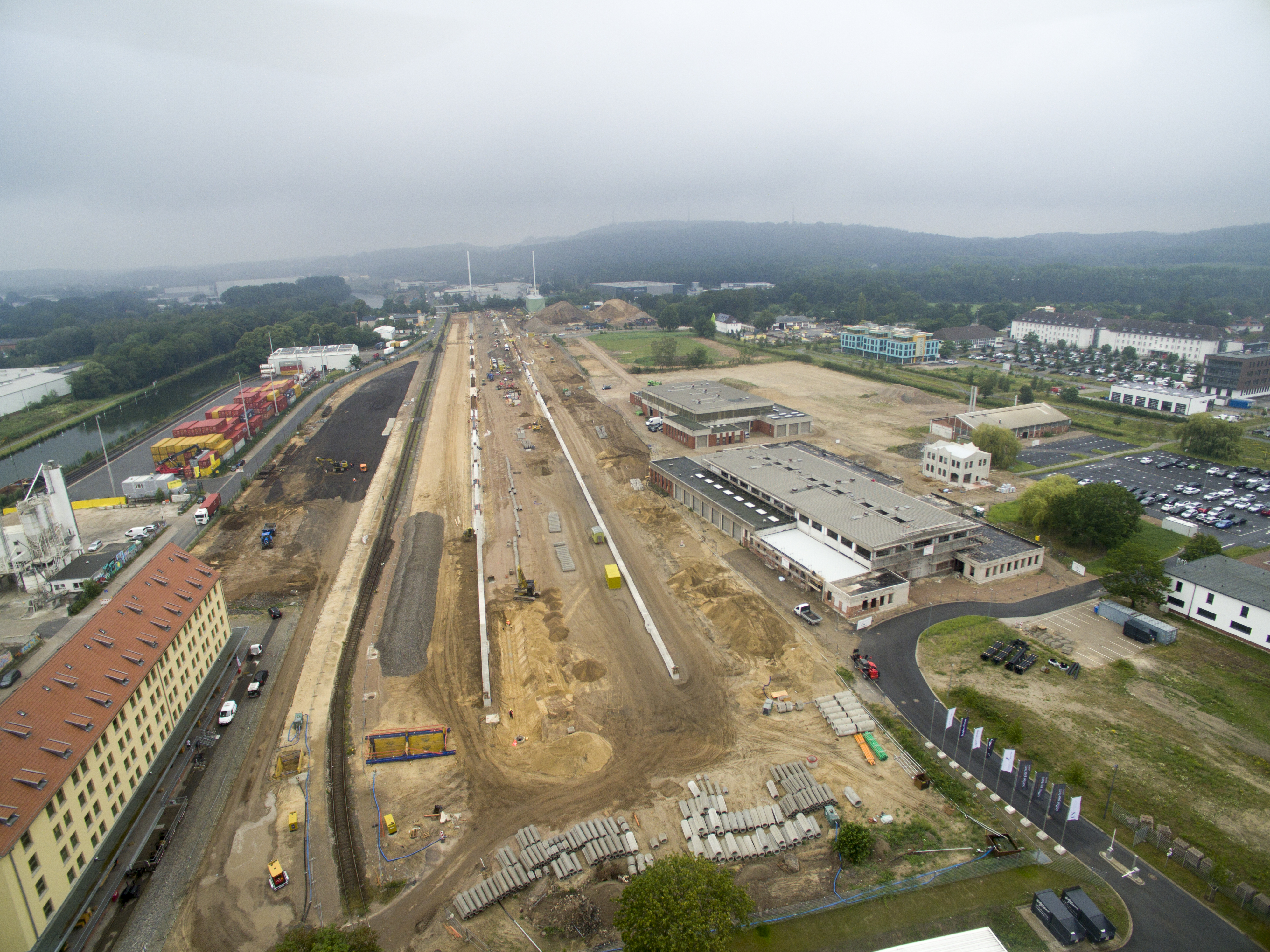 Die Bauarbeiten am Fürstenauer Weg, der auch die Hauptanbindung für das neue Containerterminal sein wird, schreiten voran.