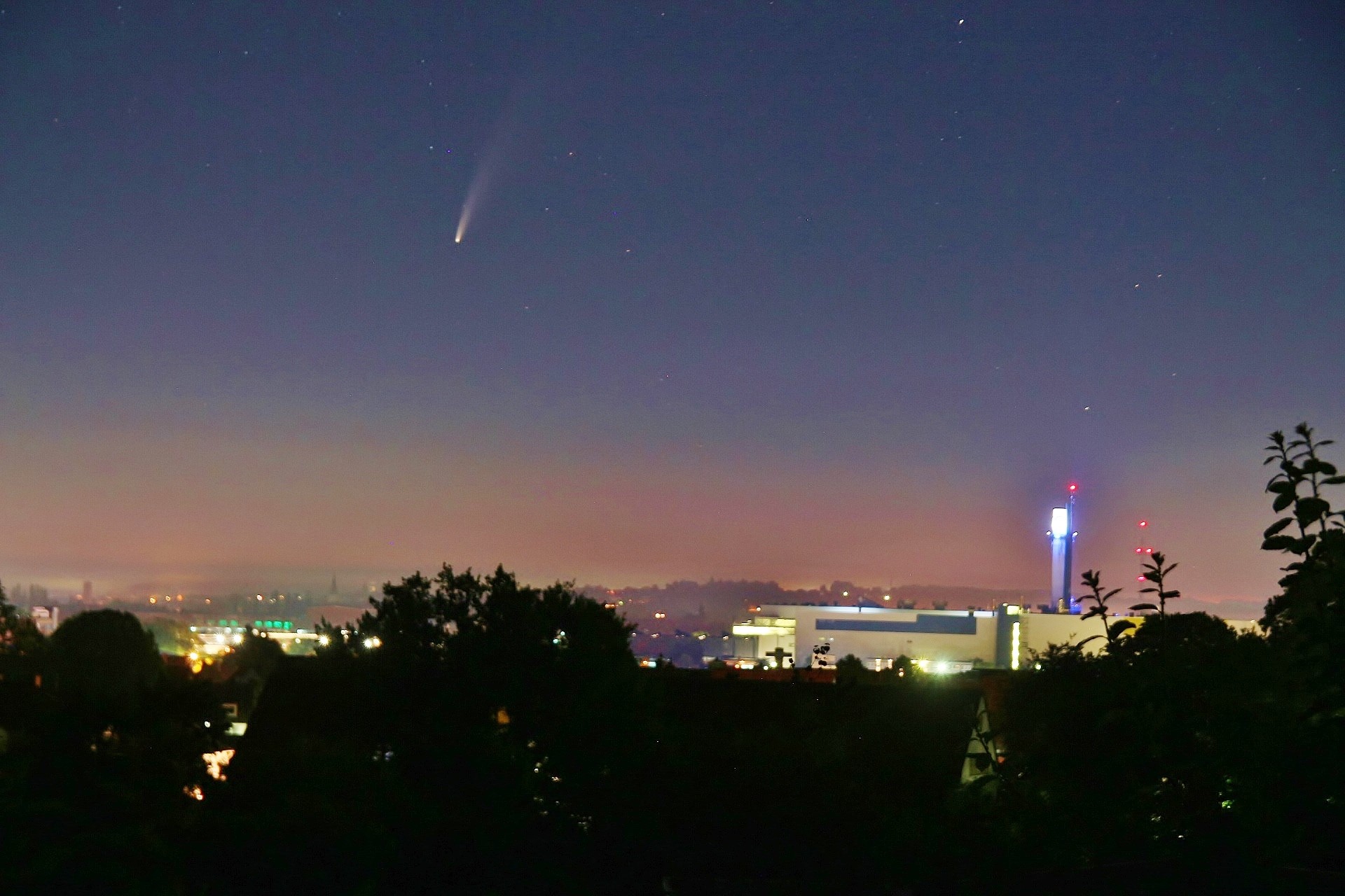 Komet NEOWISE über Osnabrück. Diese Aufnahme wurde am 12. Juli 2020 vom Schölerberg aus aufgenommen.