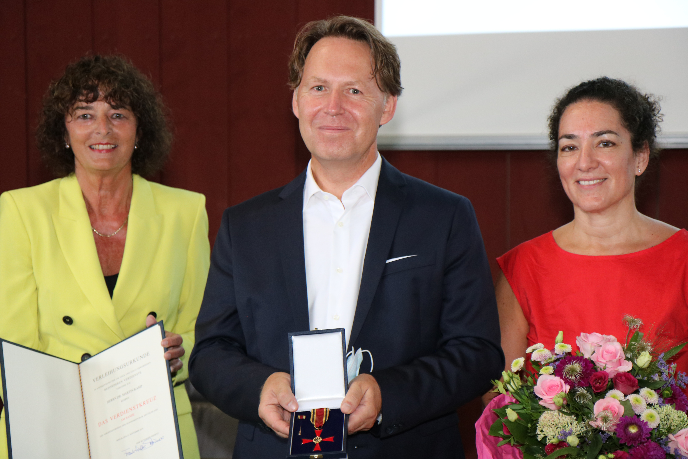Die stellvertretende Landrätin Luise Fruhen mit Dr. Martin Kamp und seiner Lebenspartnerin Noah Smolsky.