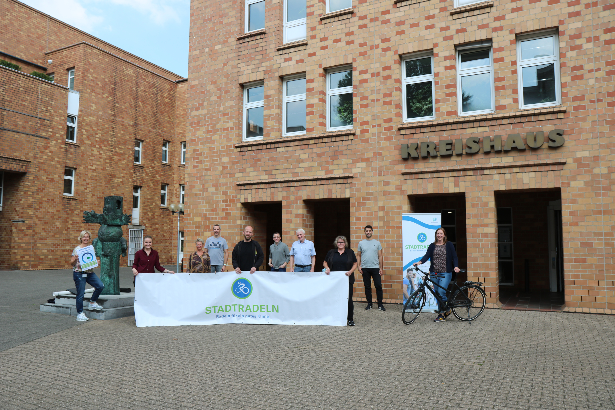 V.l.n.r.: Susanne Laurenz (Stadt Viersen), Verena Lohr (Gemeinde Niederkrüchten), Renate Kirsch (Gemeinde Brüggen), Markus Hergett (Stadt Tönisvorst), Marcel Gellißen (Stadt Willich), Jens Ernesti (Gemeinde Grefrath), Heinz Puster (Stadt Kempen), Alexandra Vahlhaus (Gemeinde Schwalmtal), Musa Sahin (Stadt Nettetal), Catherina Scholer (Kreis Viersen) bei einem Treffen vor dem Kreishaus Viersen.