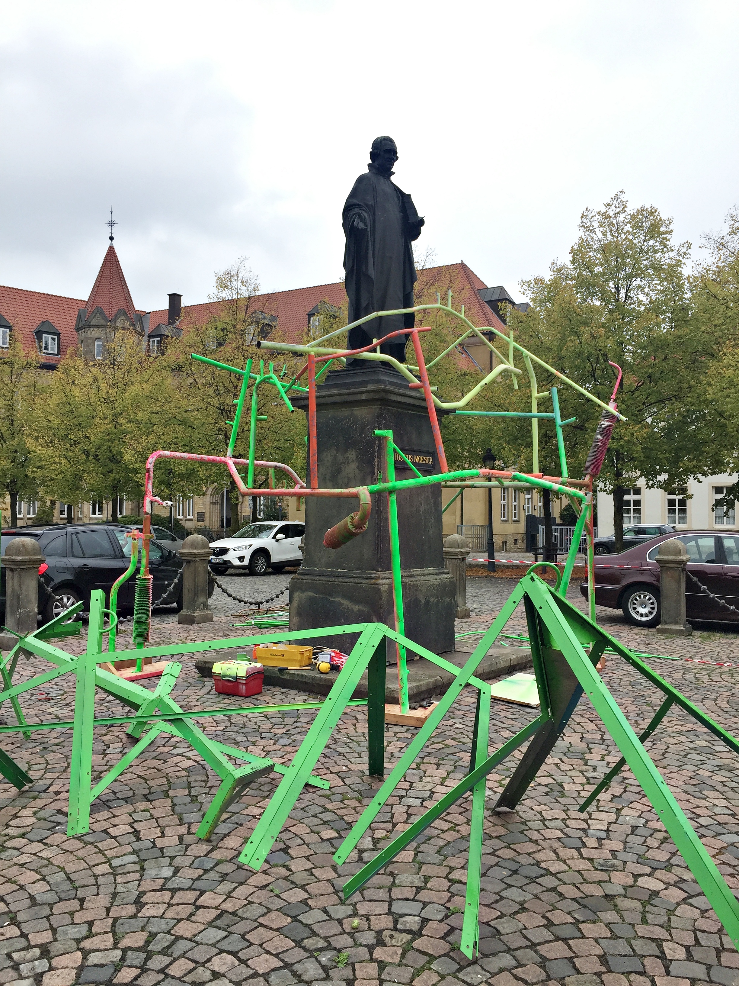 Zu Justus Mösers Füßen regt sich etwas – die Intervention von David Rauer und Samuel Treindl wird einen spannenden Kommentar zum diesjährigen Jubilar bieten.