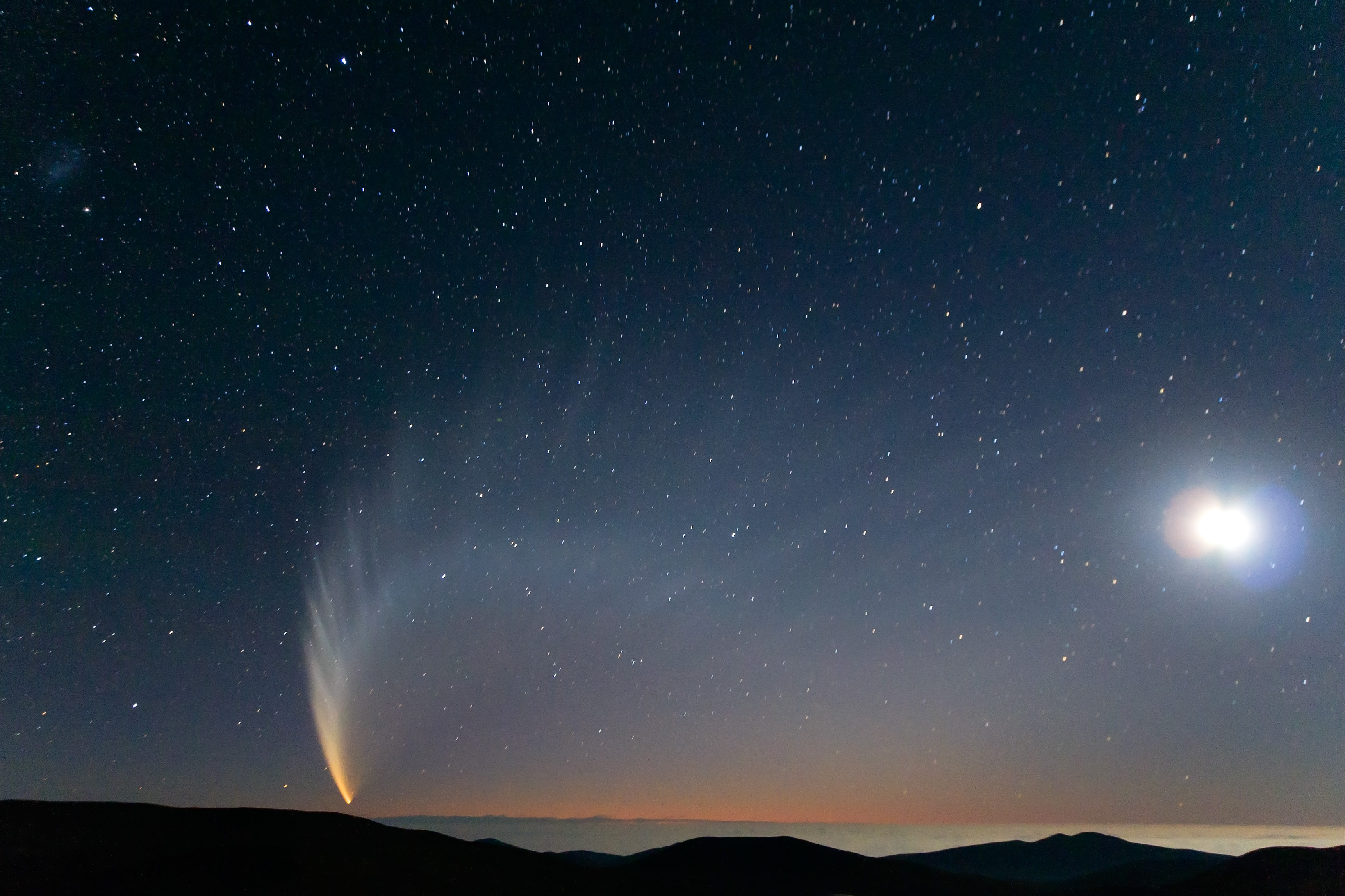 Komet McNaught über dem Pazifik, aufgennommen vom Cerro Paranal (Chile), einem der Standorte der Europäischen Südsternwarte (ESO). Der einprägsame Kometenschweif erinnert an den Schweif des Kometen von 1744.