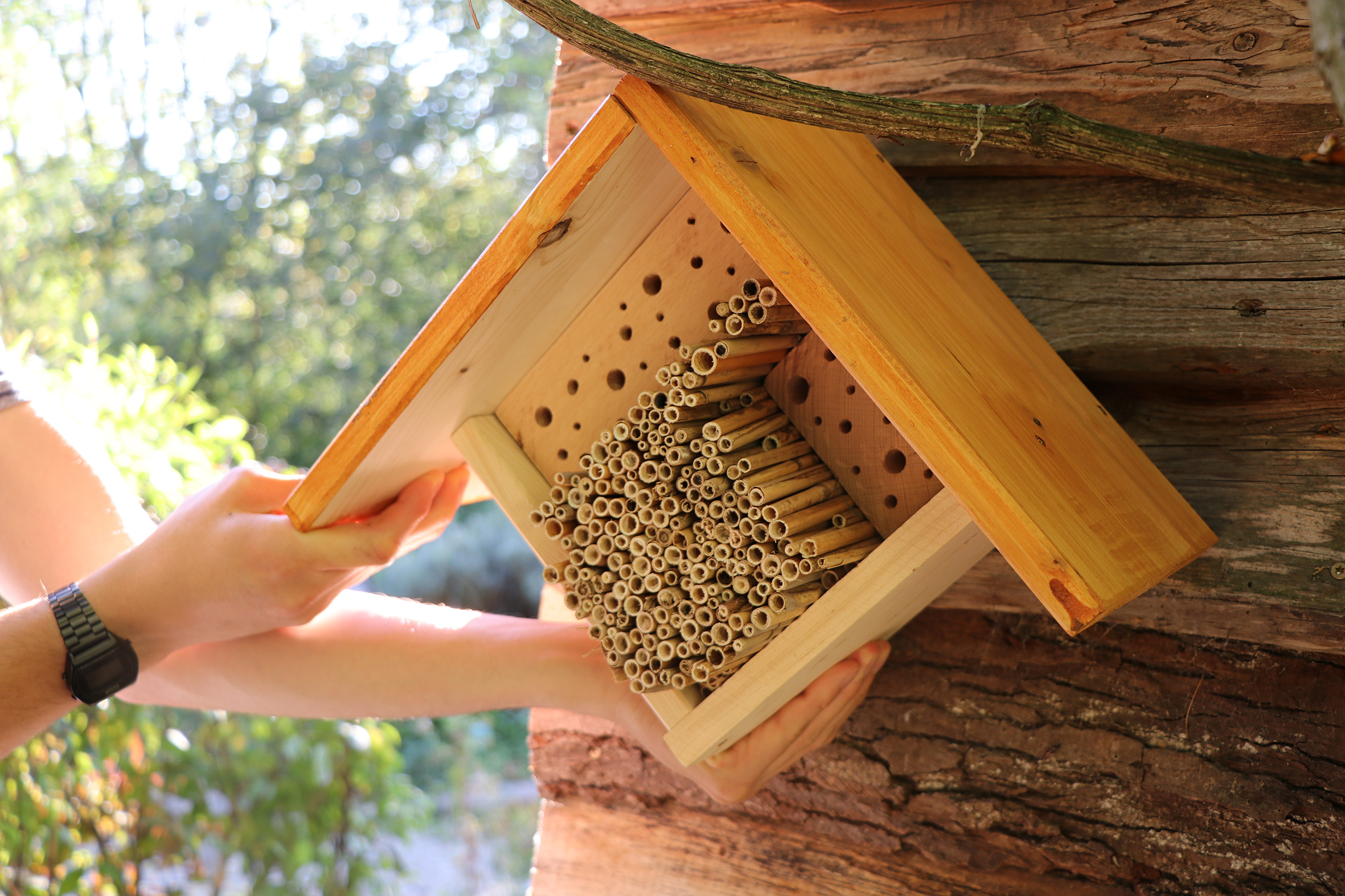 Die Röhrchen einer Nisthilfe nutzen Wildbienen für Brutzellen, aus denen im nächsten Jahr der Nachwuchs schlüpft.