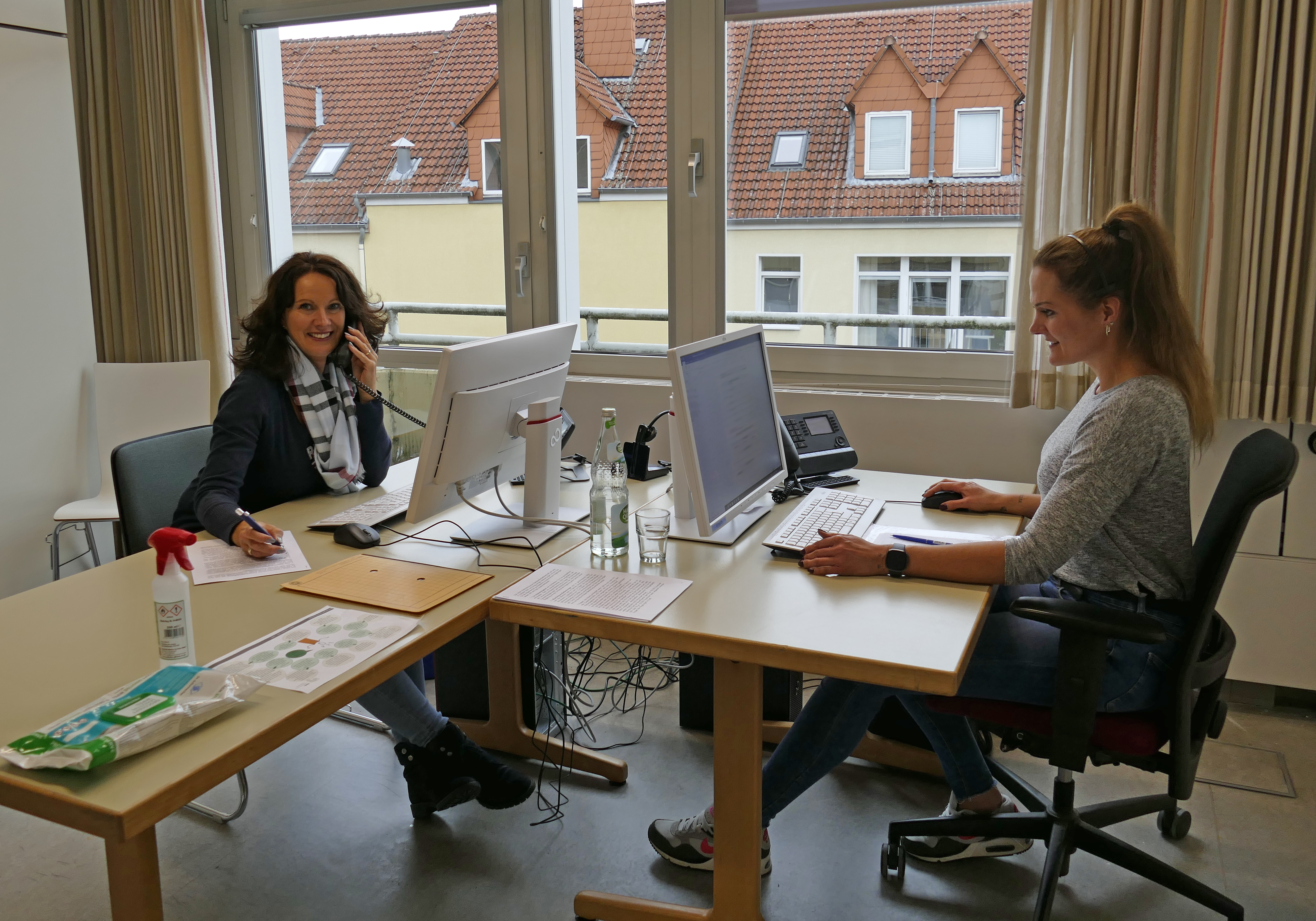 Die Landkreis-Mitarbeiterinnen Carolin Lahmann (links) und Denise David sind zwei von zirka 50 freiwilligen Helferinnen am Bürgertelefon.