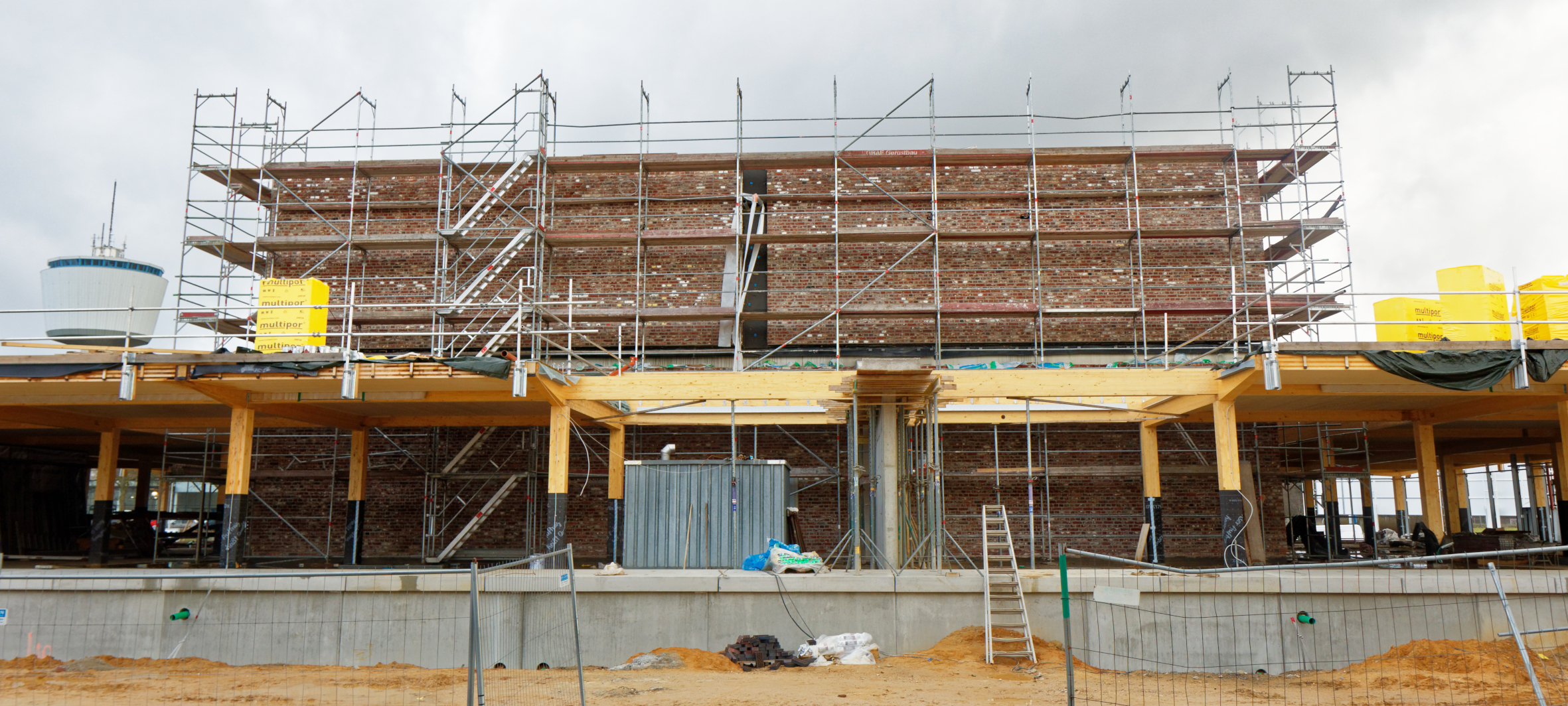 Der Rohbau des Kreisarchivs ist bereits vollständig fertiggestellt Nun kann man den verblendeten Archivkern erkennen. Foto: Kreis Viersen / Abdruck honorarfrei