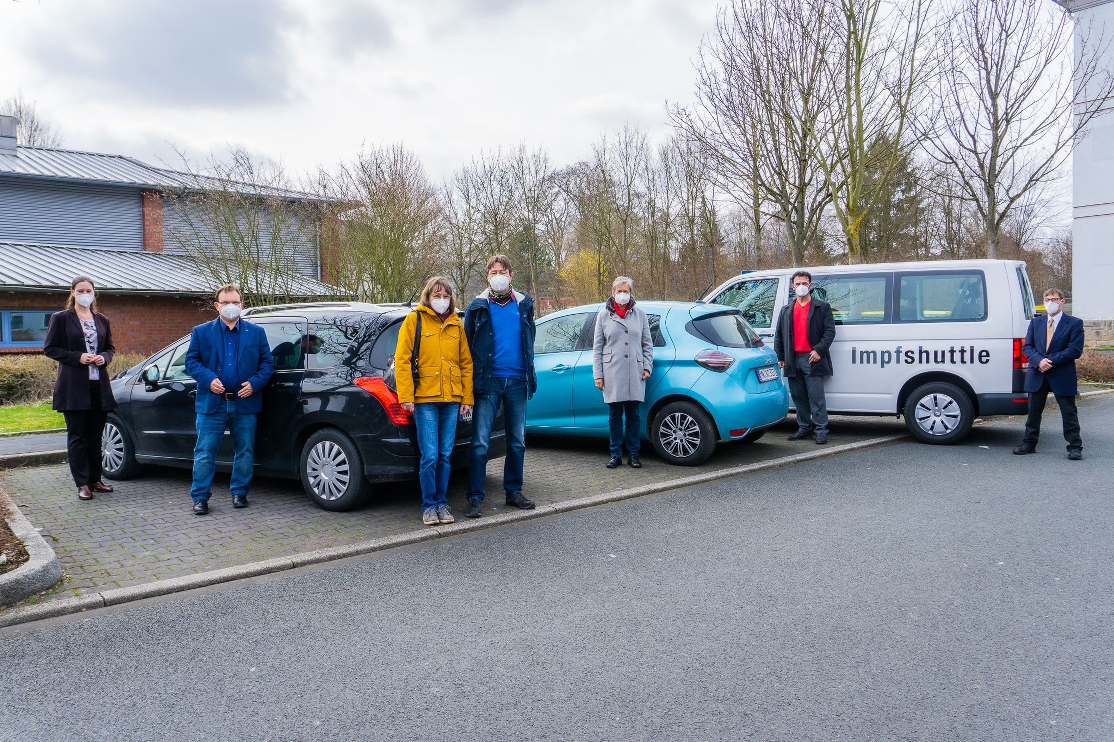 Nicole Behlau und Hinrich Riemann zogen mit fünf ehrenamtlichen Fahrerinnen und Fahrern des Fahrdienstes für Seniorinnen und Senioren zum Impfzentrum Lüdenscheid eine Zwischenbilanz der ersten zwei Einsatzmonate.