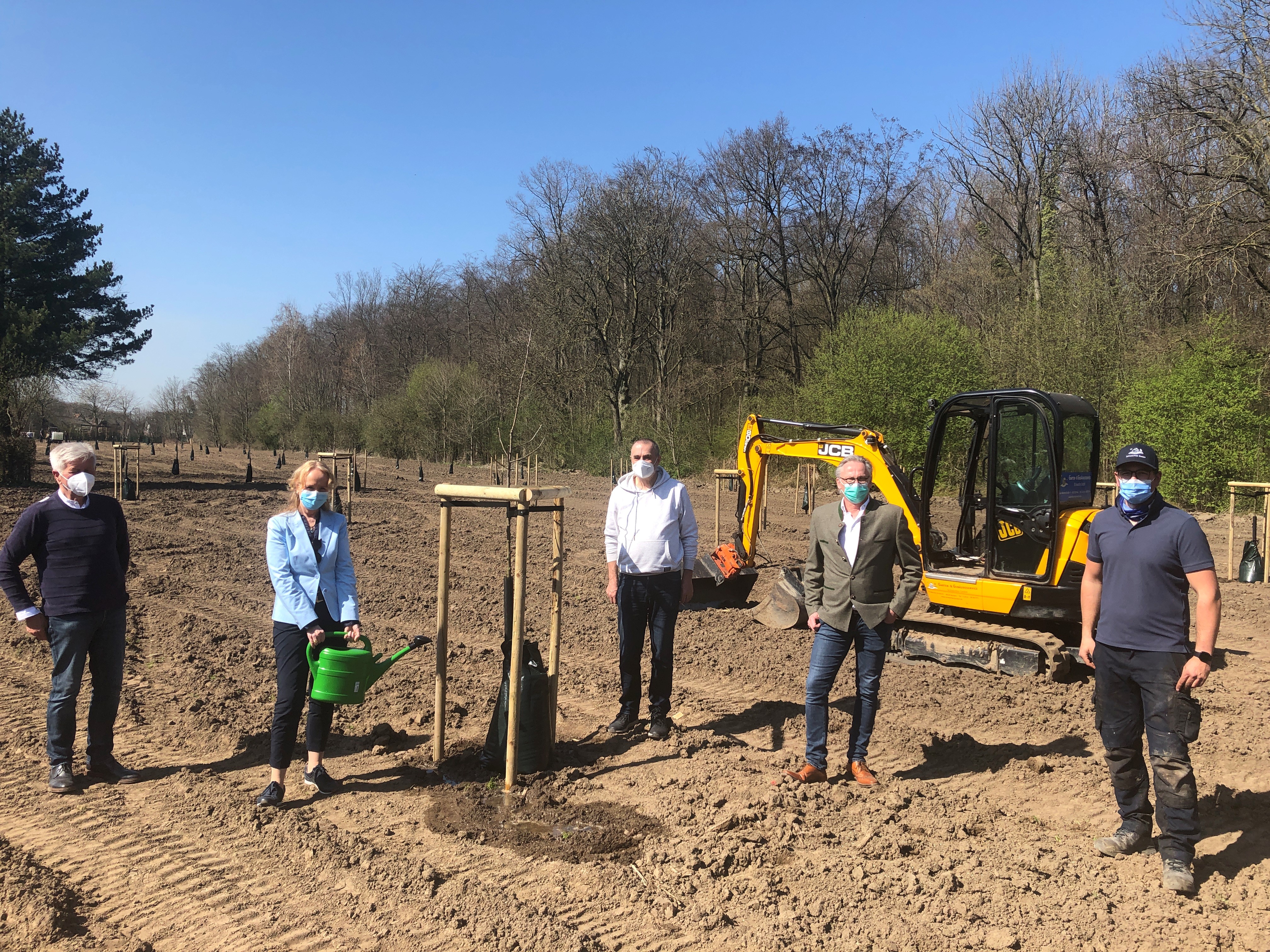 Bürgermeisterin Mechtild Schulze Hessing mit (von links) Herbert Helling und Dr. Bernd Braunert vom Heimatverein sowie Initiator Stefan Hegmanns und Tobias Schwartke, der mit seinen Mitarbeitern die Fläche umgestaltet hat.