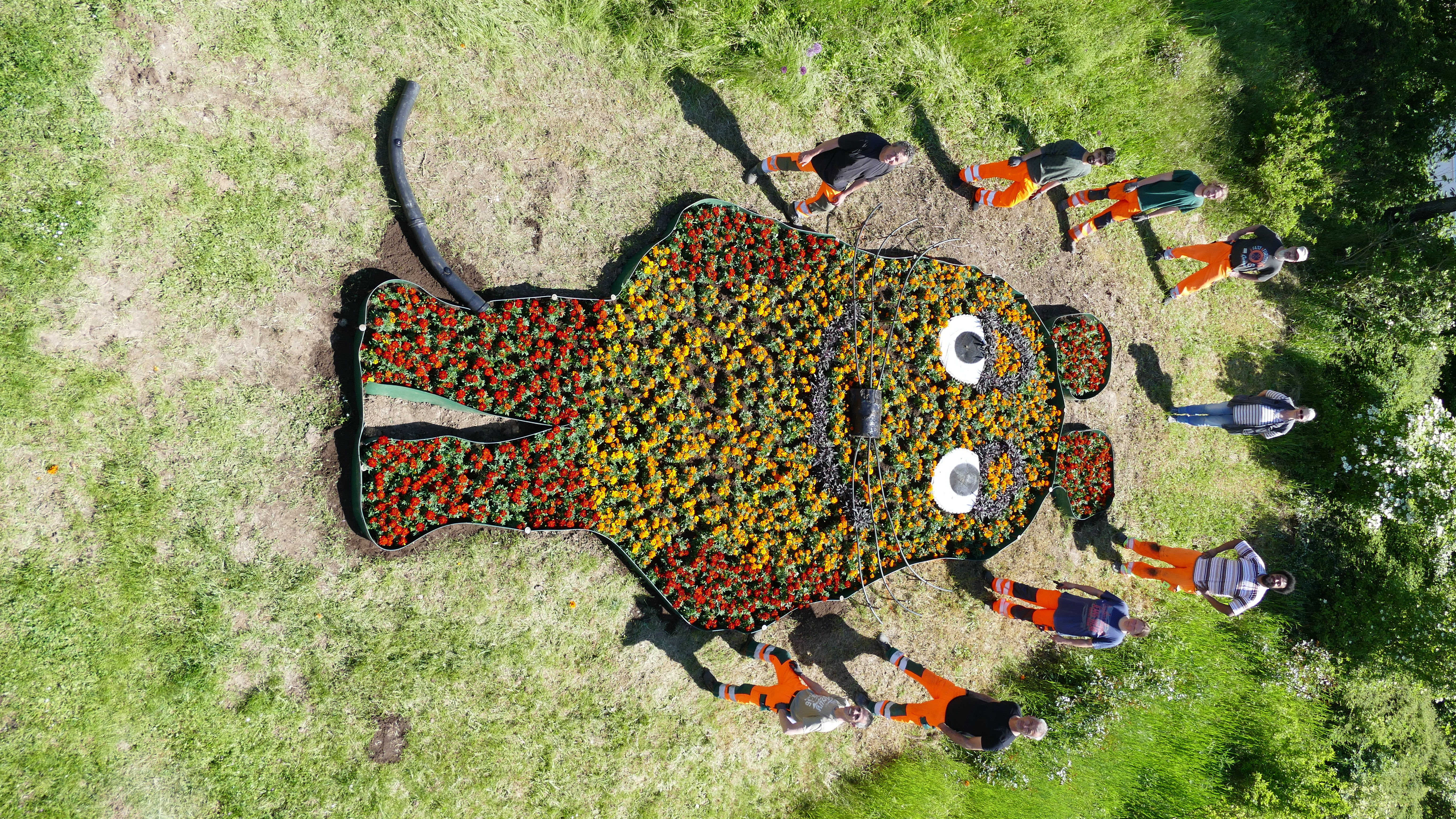Binnen eines Tages stellten Beschäftigte der HIS-Abteilung Grünflächen in Großauheim das Pflanzbeet mit rund 2200 Tagetes zu Ehren der Fernseh-Maus her.