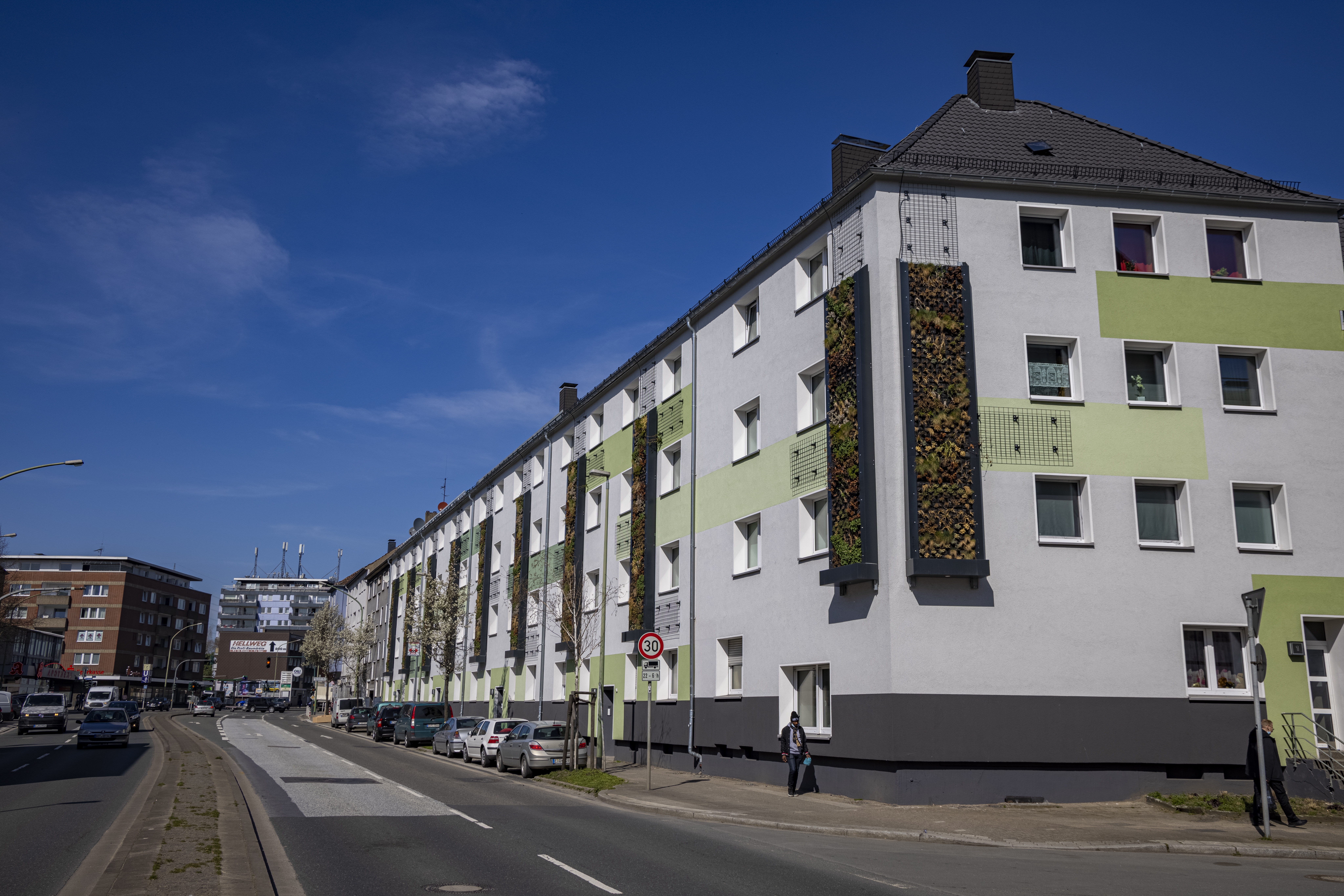 Ein Beispiel für eine Fassadenbegrünung sind die Häuser der Allbau GmbH in Essen an der Gladbecker Straße.